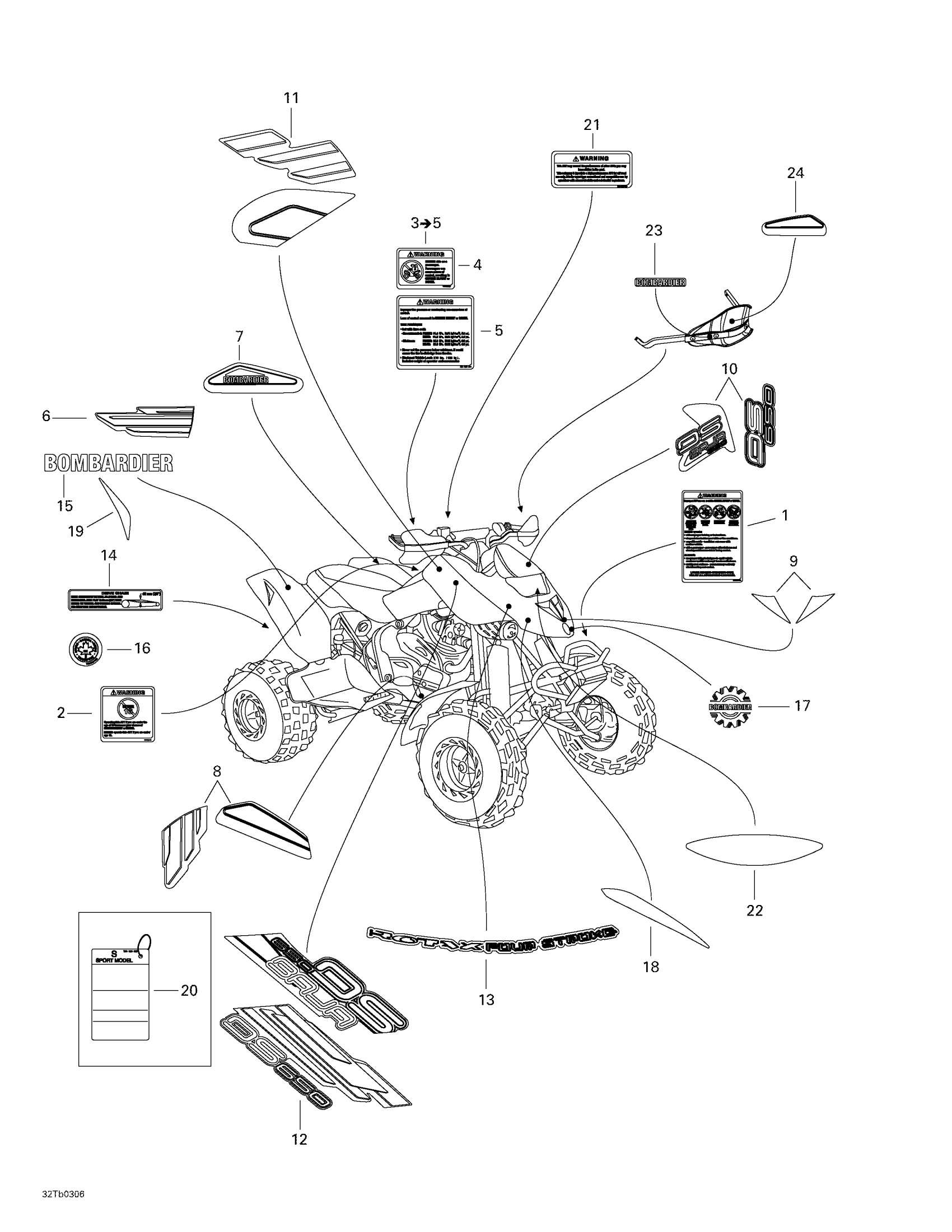 Can-Am DS 650, 2003 Decals Diagram