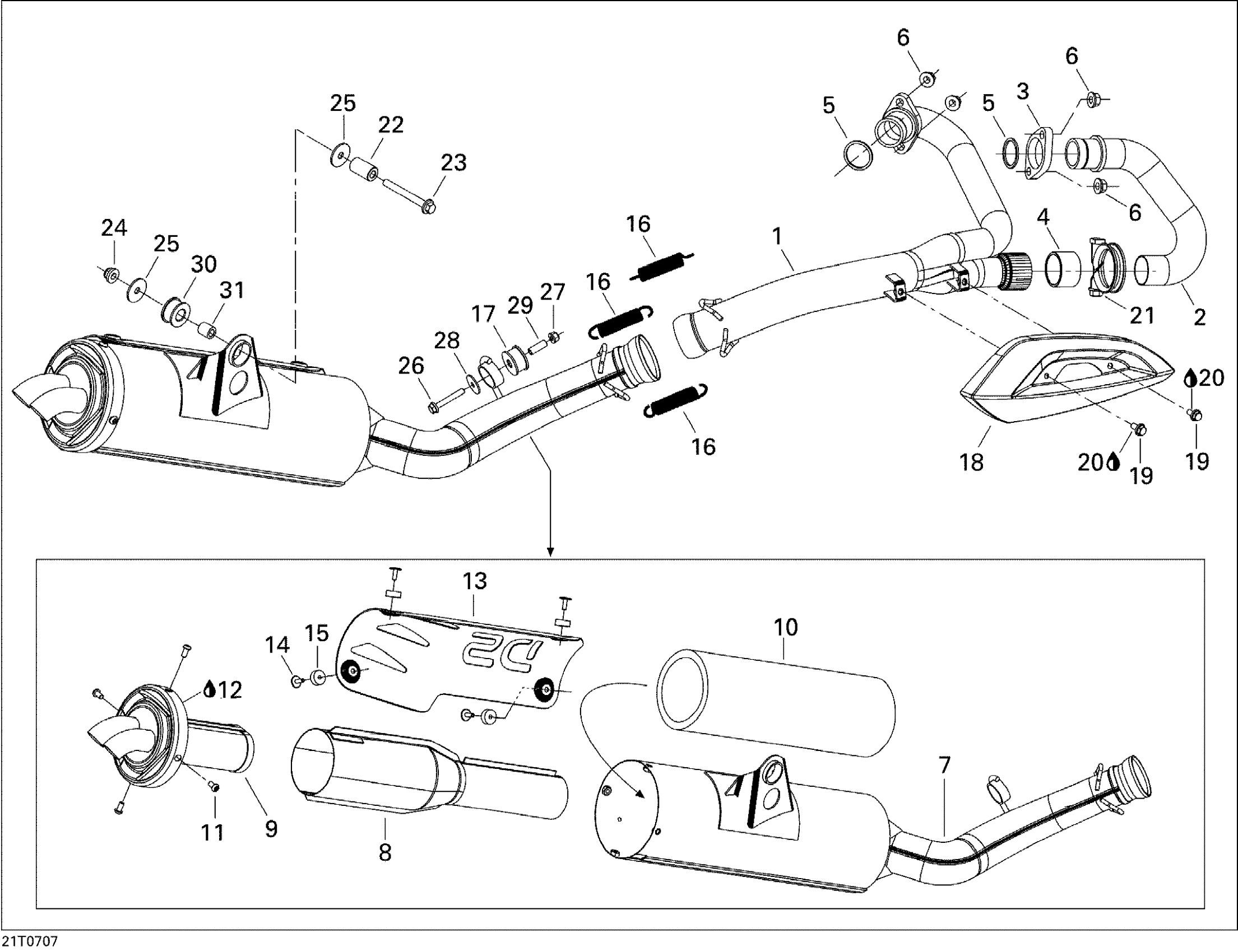 Can-Am DS 650 X, 2007 Exhaust System Diagram