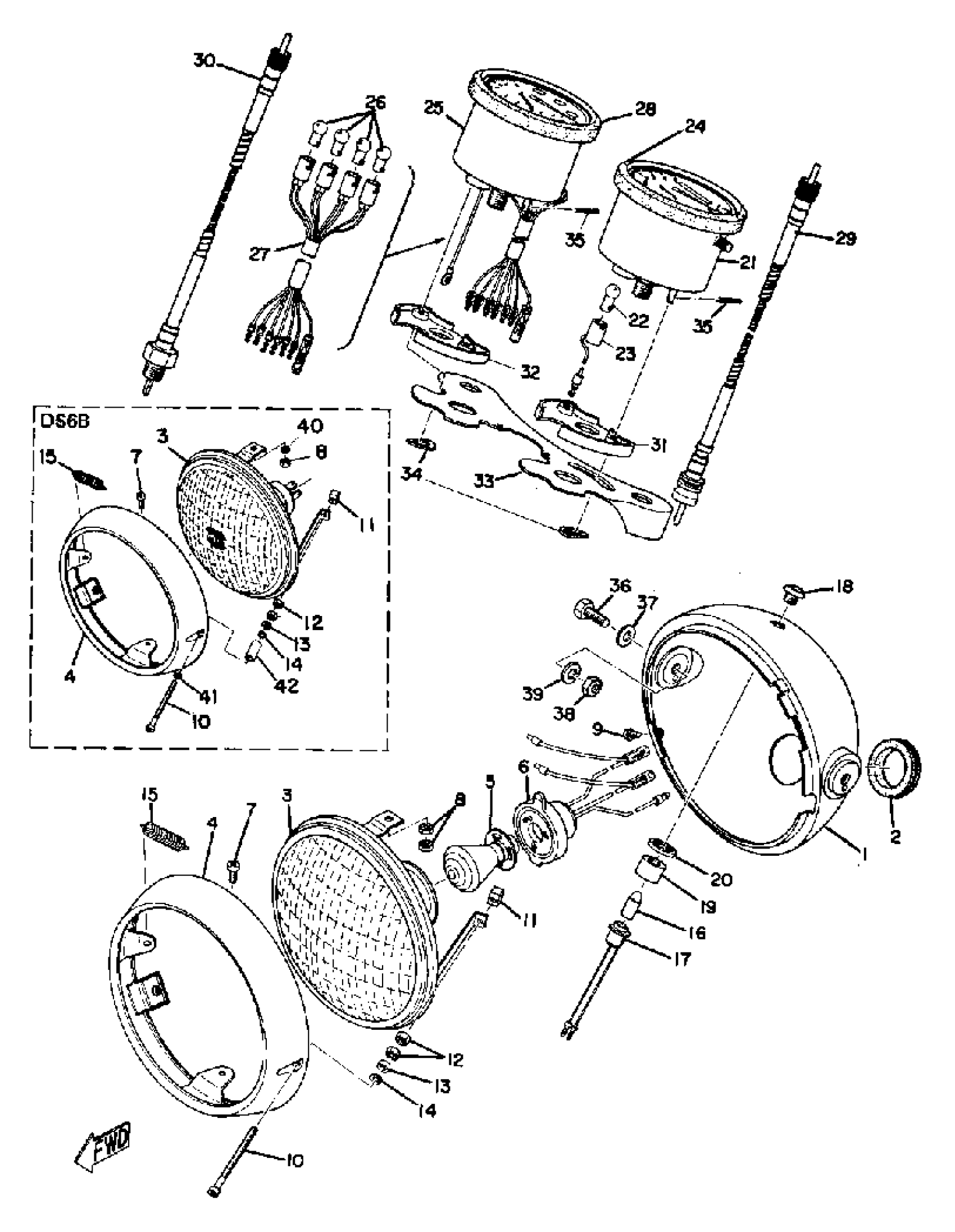 Yamaha DS6C (DS6C) 1969 HEADLAMP, SPEEDOMETER & TACHOMETER Diagram