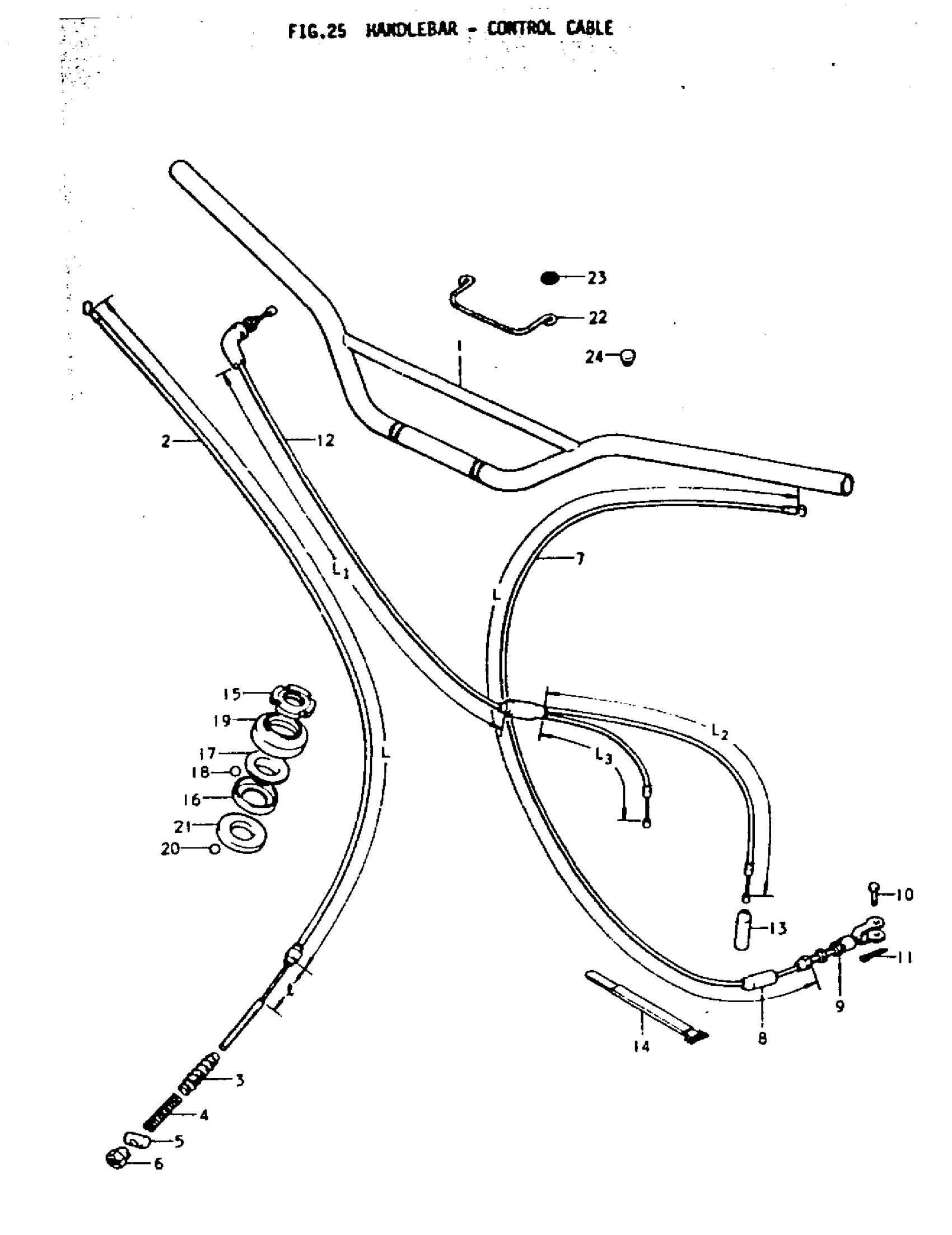 Suzuki DS80 (1979) HANDLEBAR-CONTROL CABLE Diagram