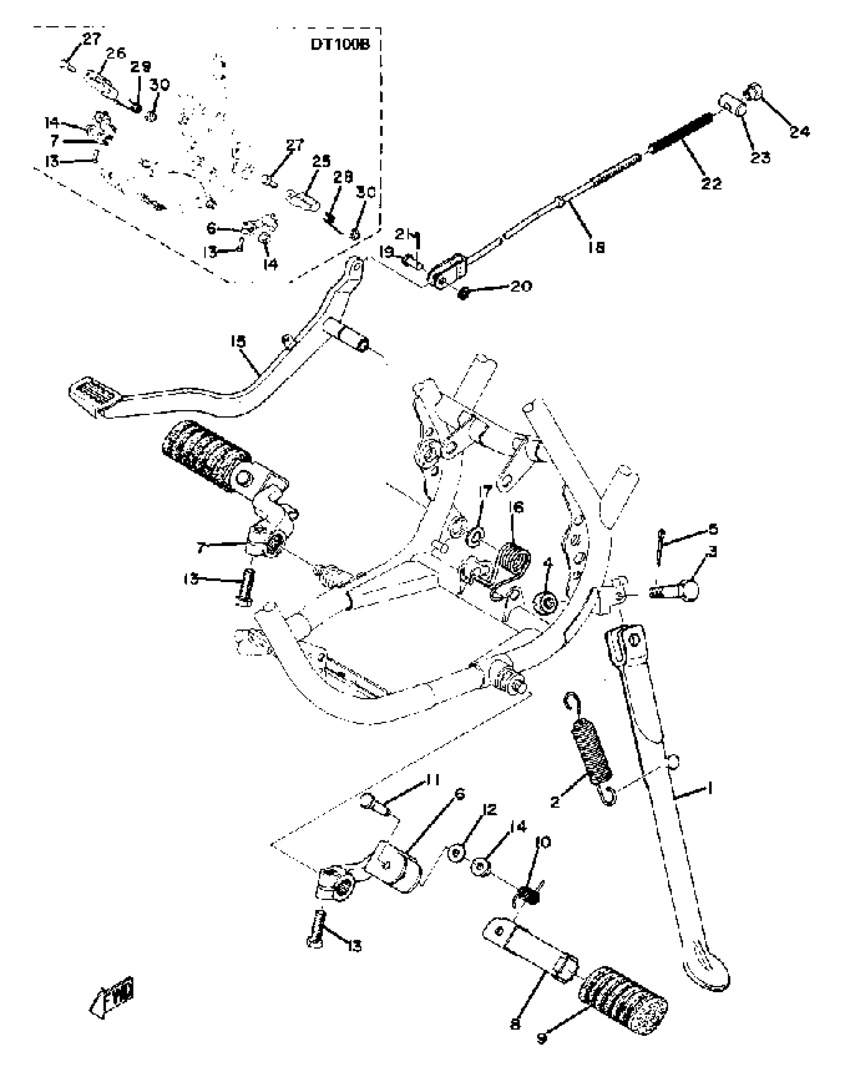 Yamaha DT100A (DT100A) 1974 STAND FOOTREST BRAKE PEDAL Diagram