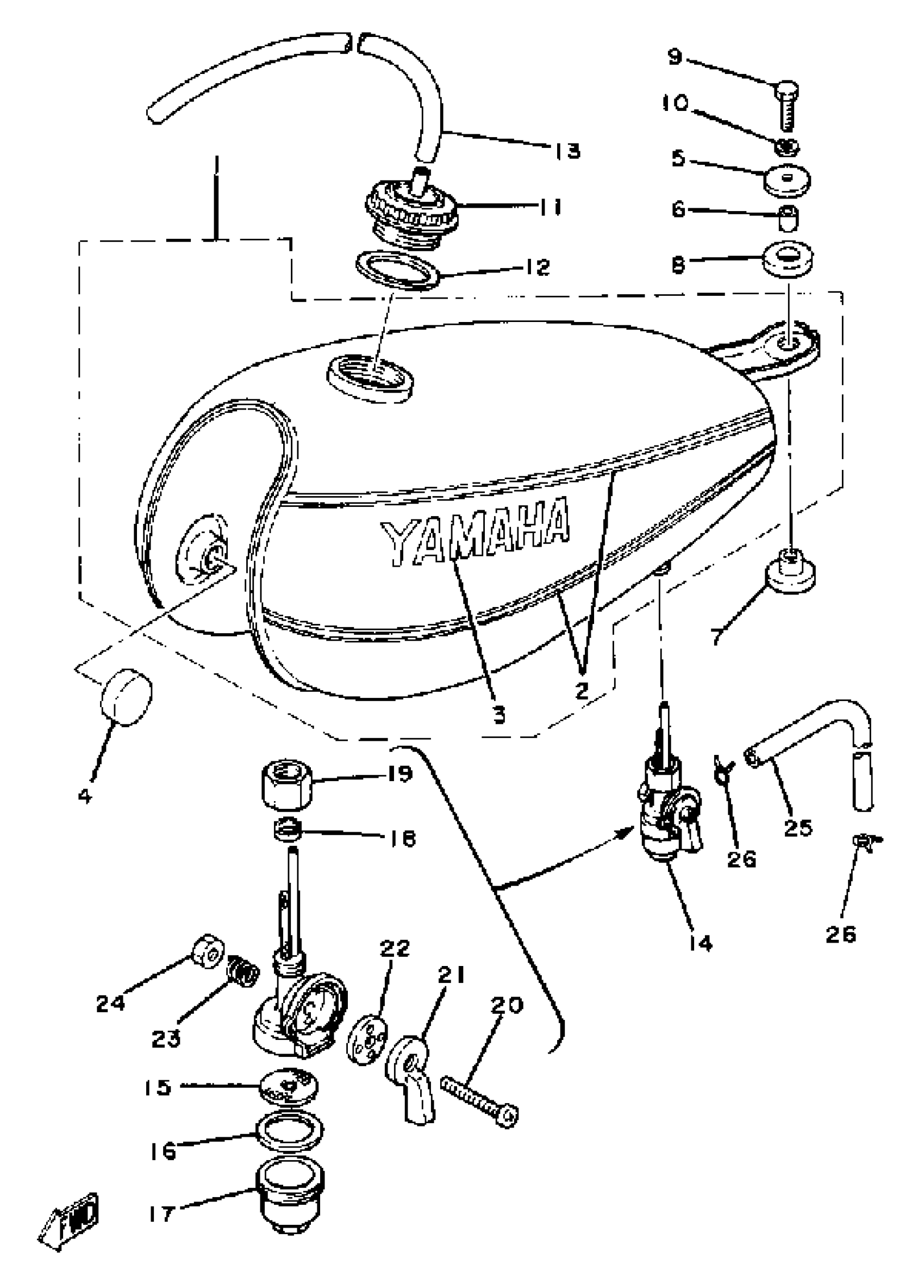 Yamaha DT100E (DT100E) 1978 FUEL TANK DT100G Diagram