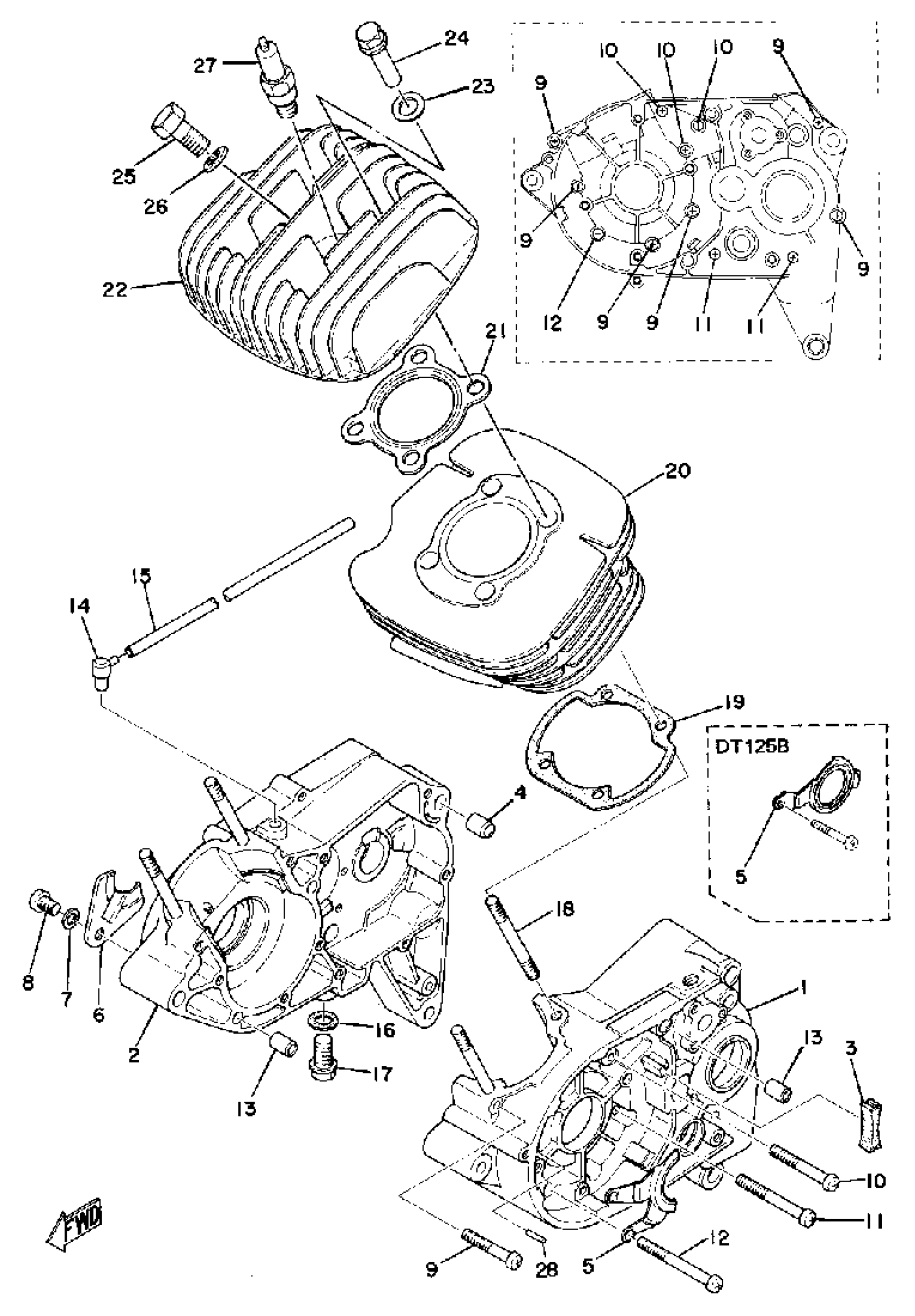 Yamaha DT125A (DT125A) 1974 CRANKCASE - CYLINDER Diagram