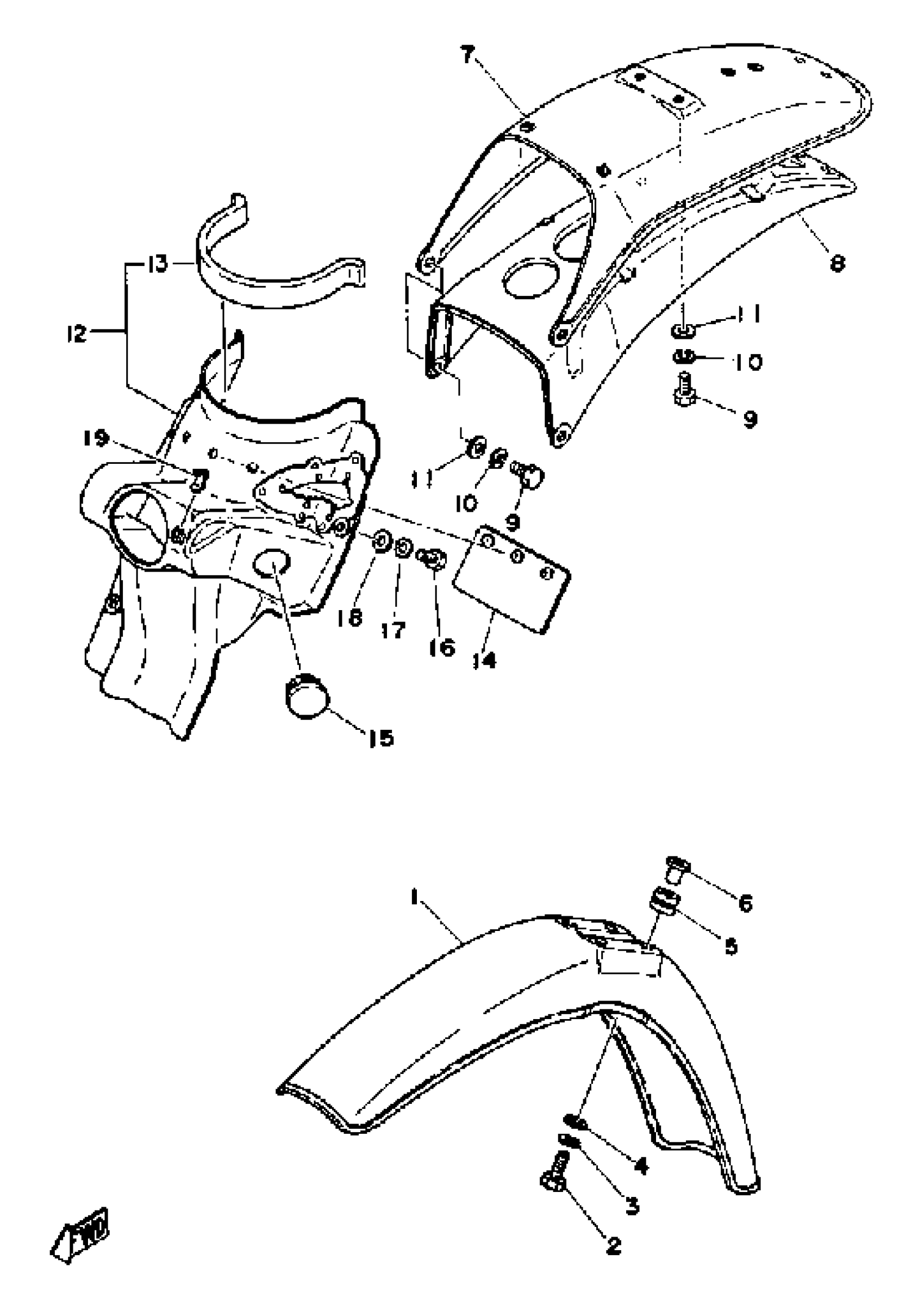 Yamaha DT125F (DT125F) 1979 FRONT FENDER REAR FENDER Diagram