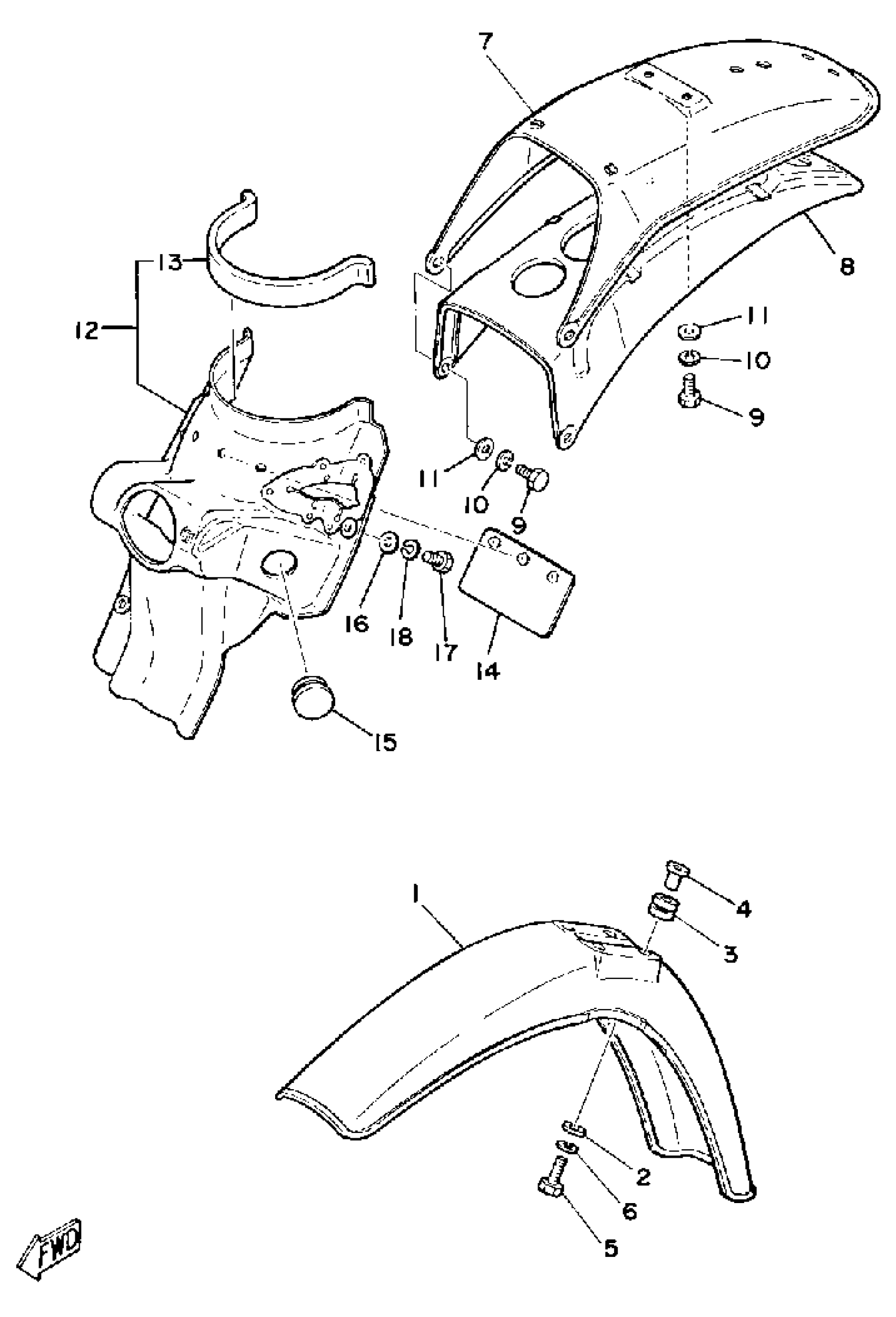 Yamaha DT125G (DT125G) 1980 FRONT FENDER REAR FENDER Diagram