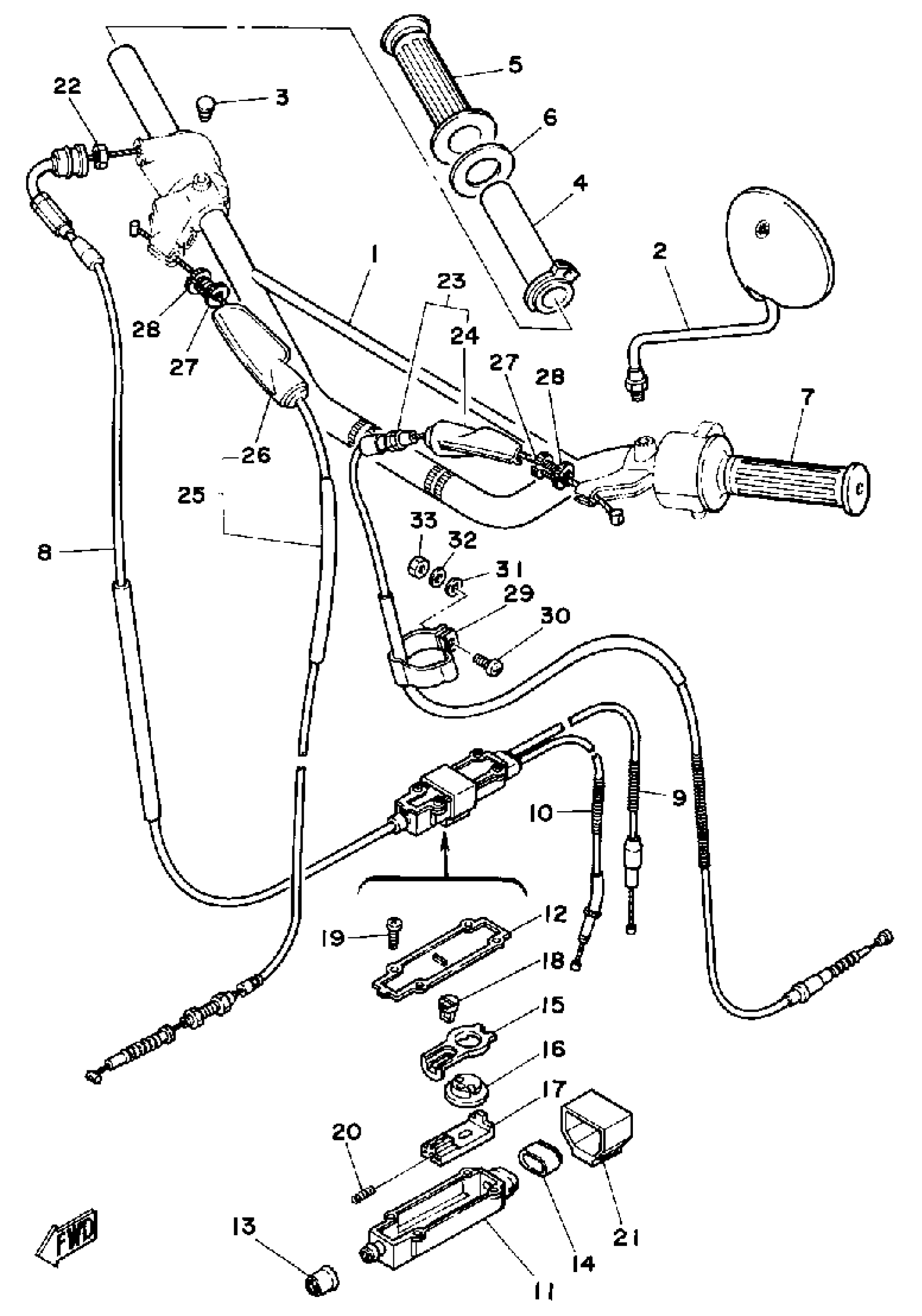 Yamaha DT125H (DT125H) 1981 HANDLEBAR-CABLE Diagram