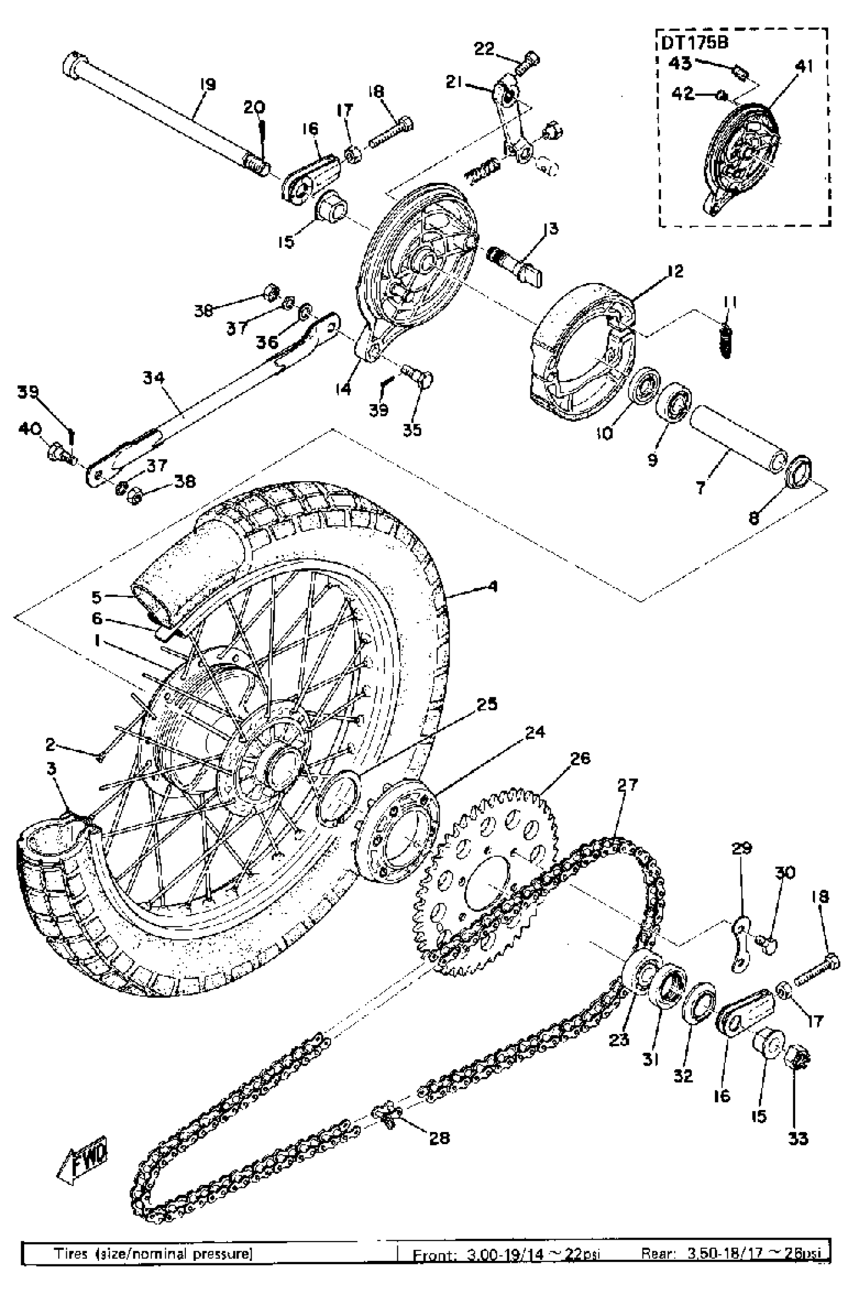 Yamaha DT175A (DT175A) 1974 REAR WHEEL Diagram