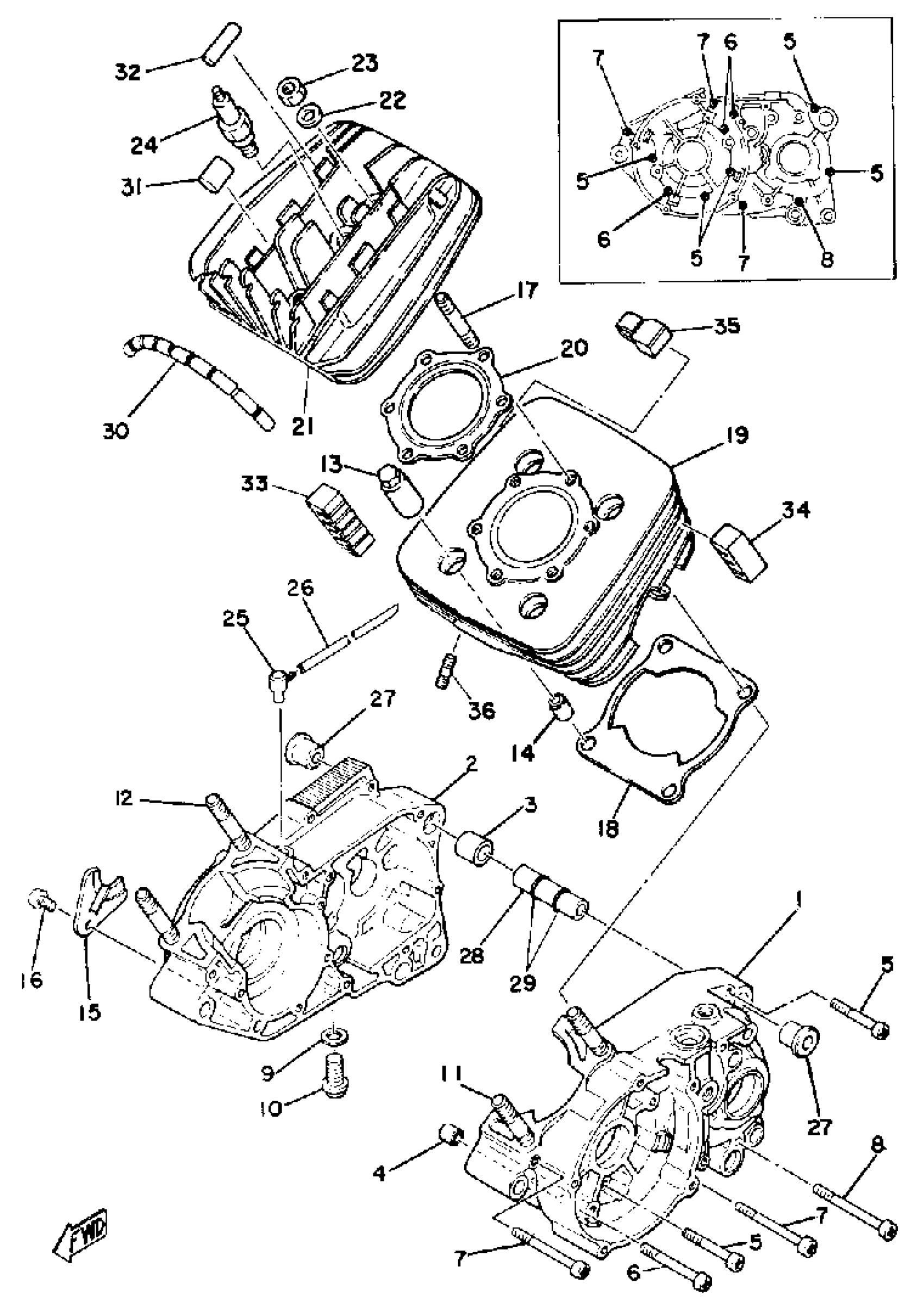 Yamaha DT175F (DT175F) 1979 CRANKCASE - CYLINDER Diagram