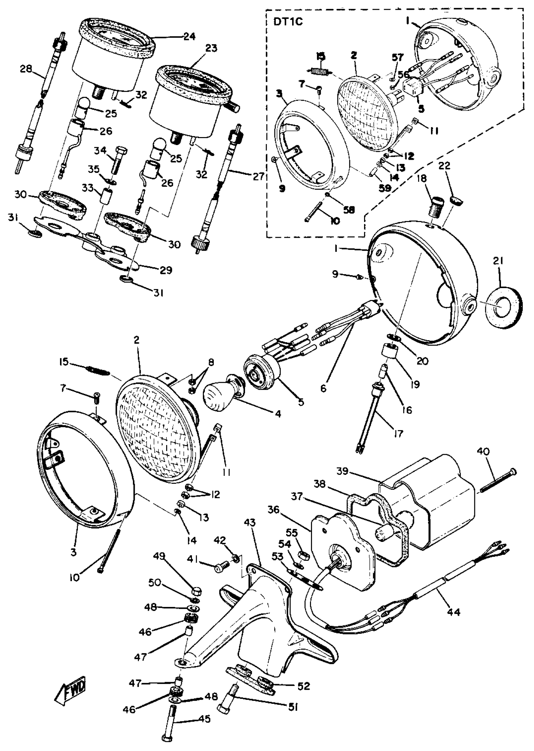 Yamaha DT1S (DT1S) 1969 HEAD LAMP, TAIL LAMP & SPEEDOMETER Diagram