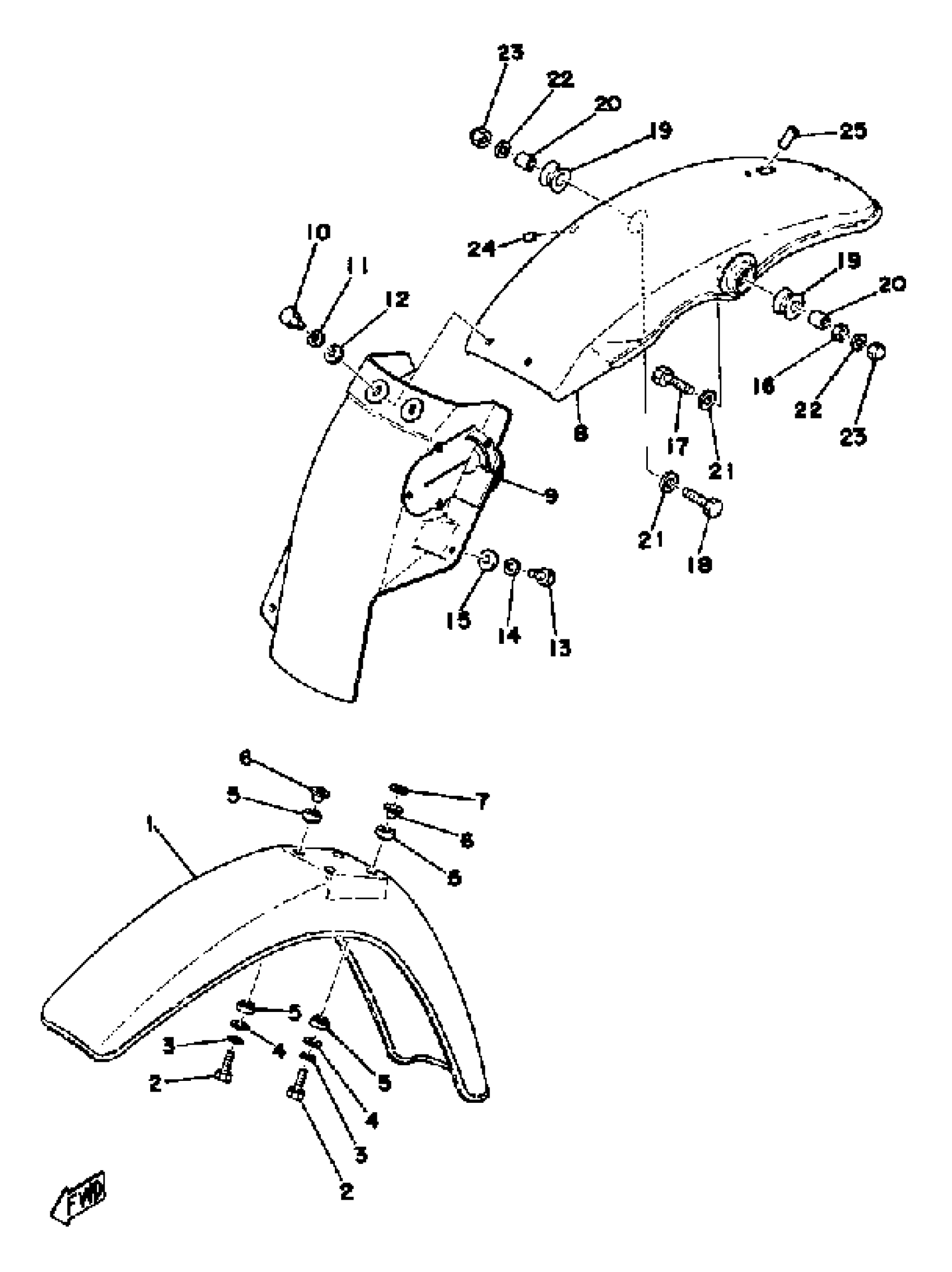 Yamaha DT400B (DT400B) 1975 FRONT FENDER - REAR FENDER 250B - C - 400B - C Diagram