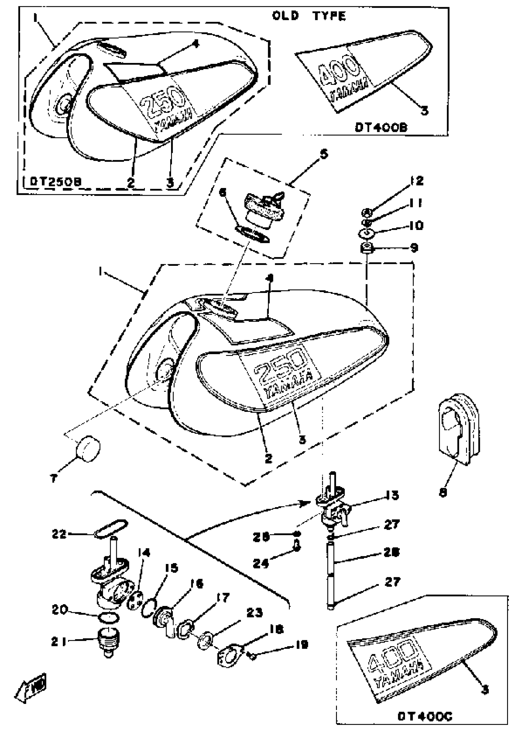 Yamaha DT400B (DT400B) 1975 FUEL TANK 250B - C - 400B - C Diagram