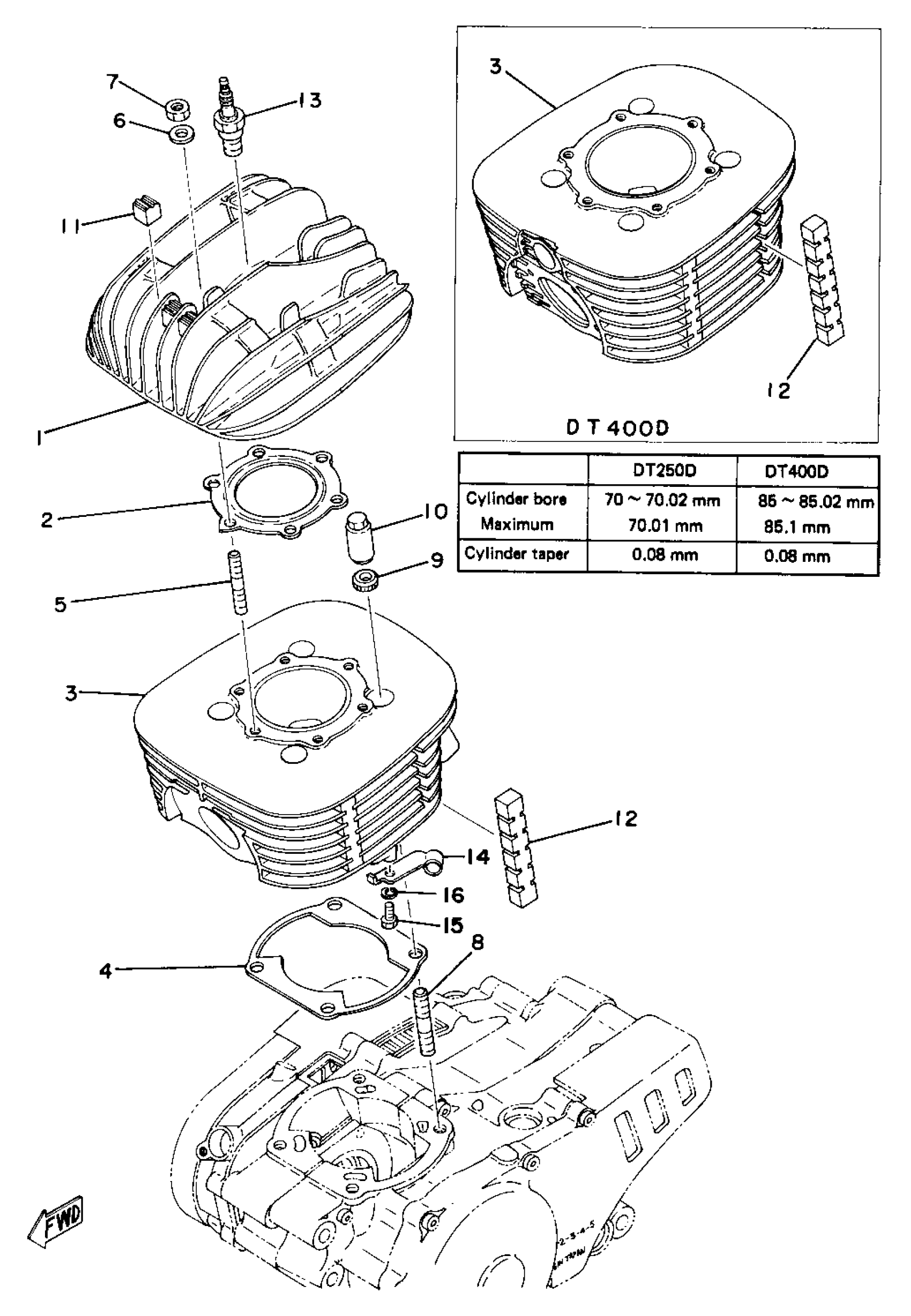 Yamaha DT400D (DT400D) 1977 CYLINDER HEAD - CYLINDER Diagram