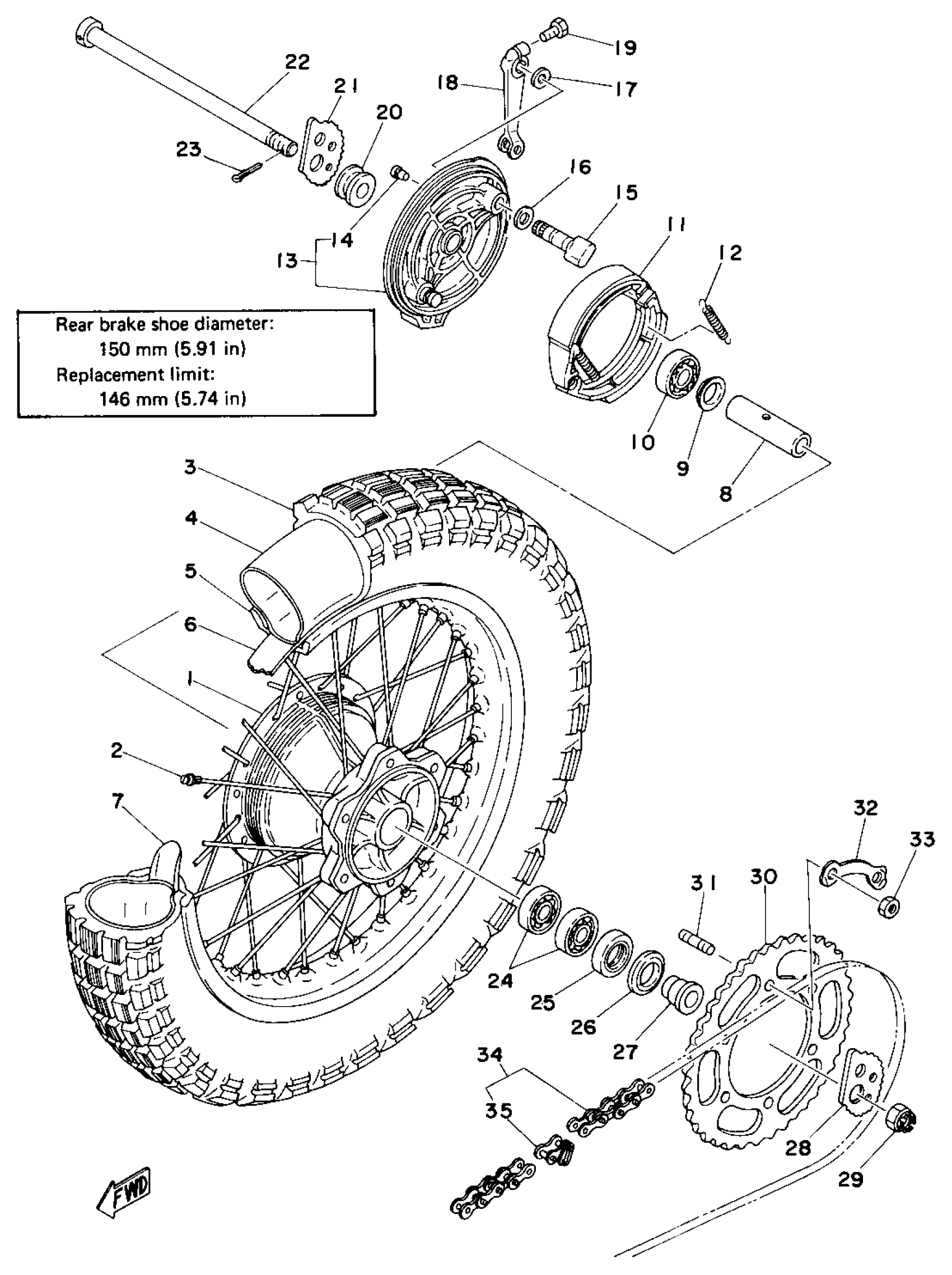 Yamaha DT400D (DT400D) 1977 REAR WHEEL (DT250D) Diagram