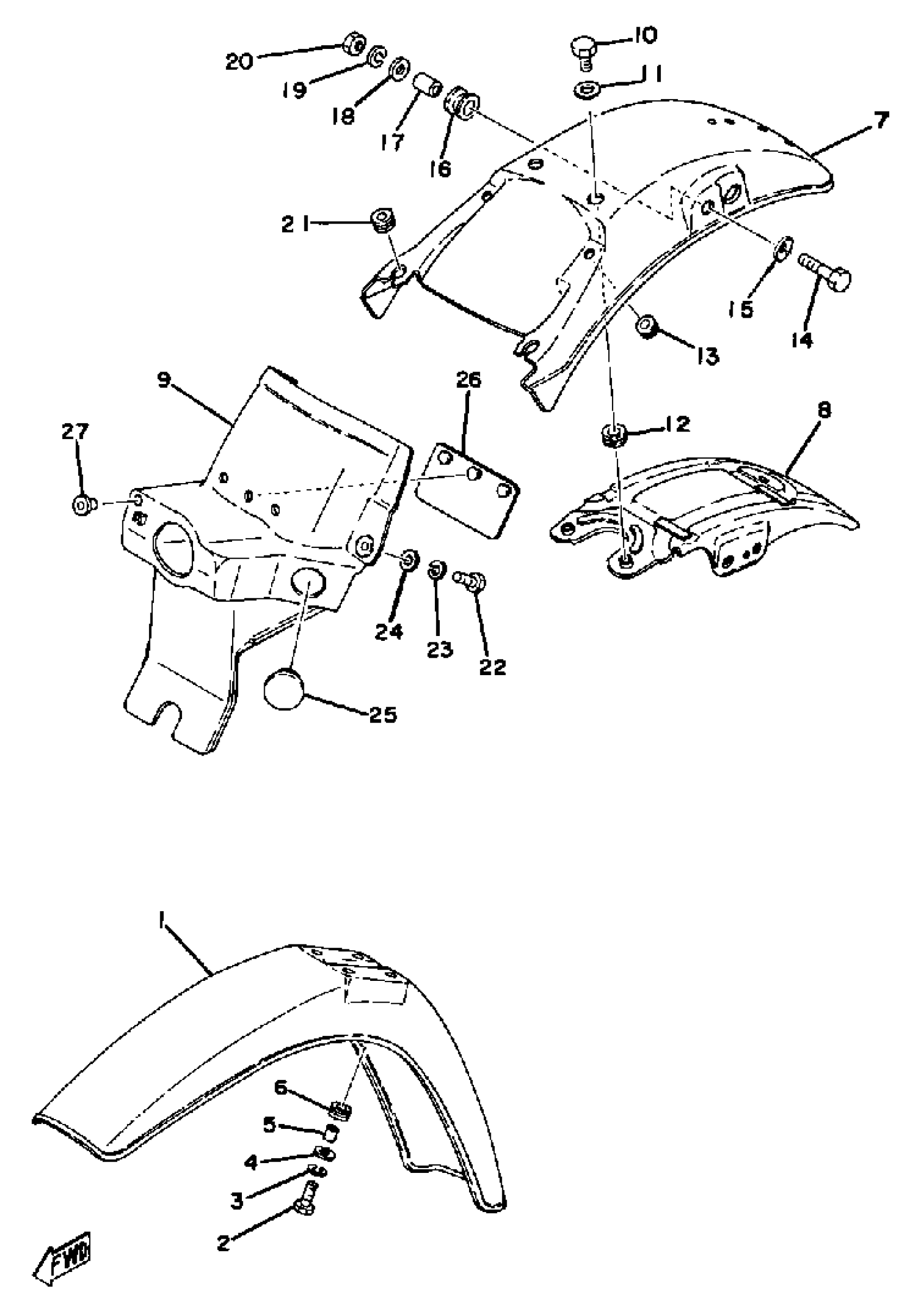 Yamaha DT400E (DT400E) 1978 FRONT REAR FENDER Diagram