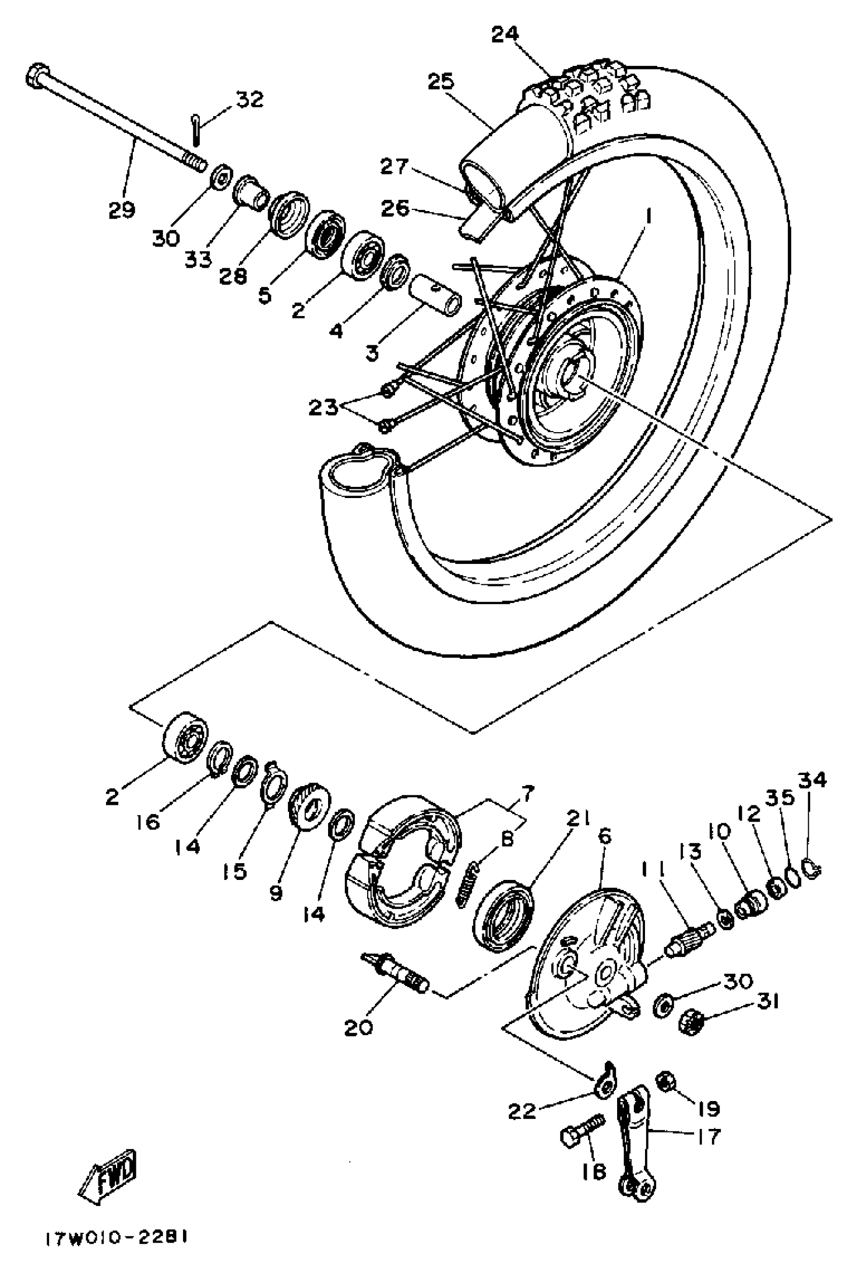 Yamaha DT50LC (DT50W) 1988 FRONT WHEEL Diagram