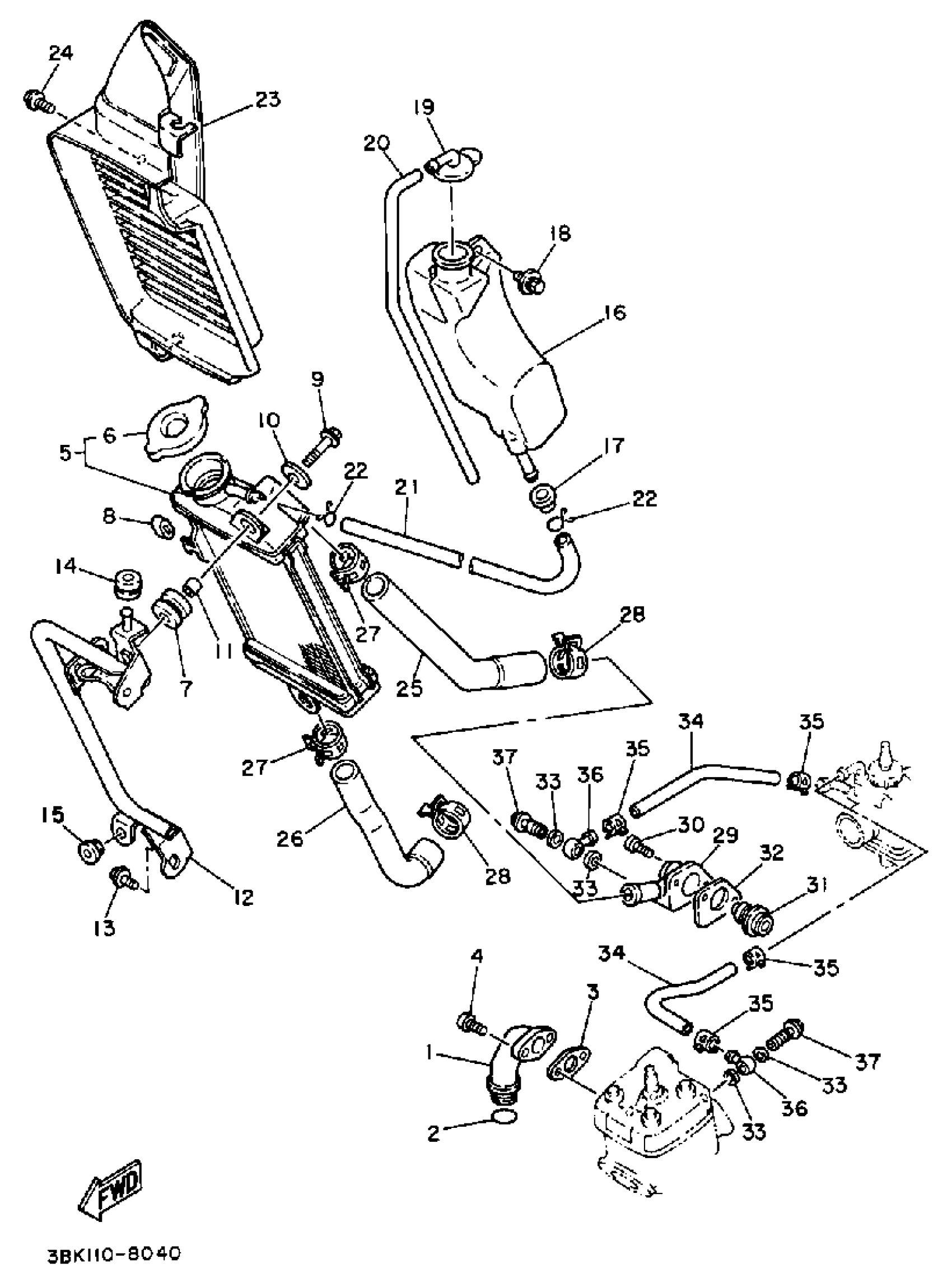 Yamaha DT50LC (DT50W) 1988 RADIATOR - HOSE Diagram