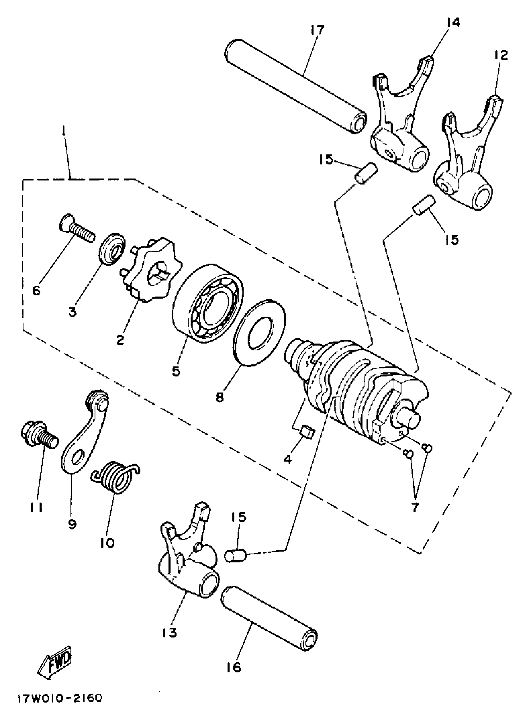 Yamaha DT50LC (DT50W) 1988 SHIFT CAM - FORK Diagram