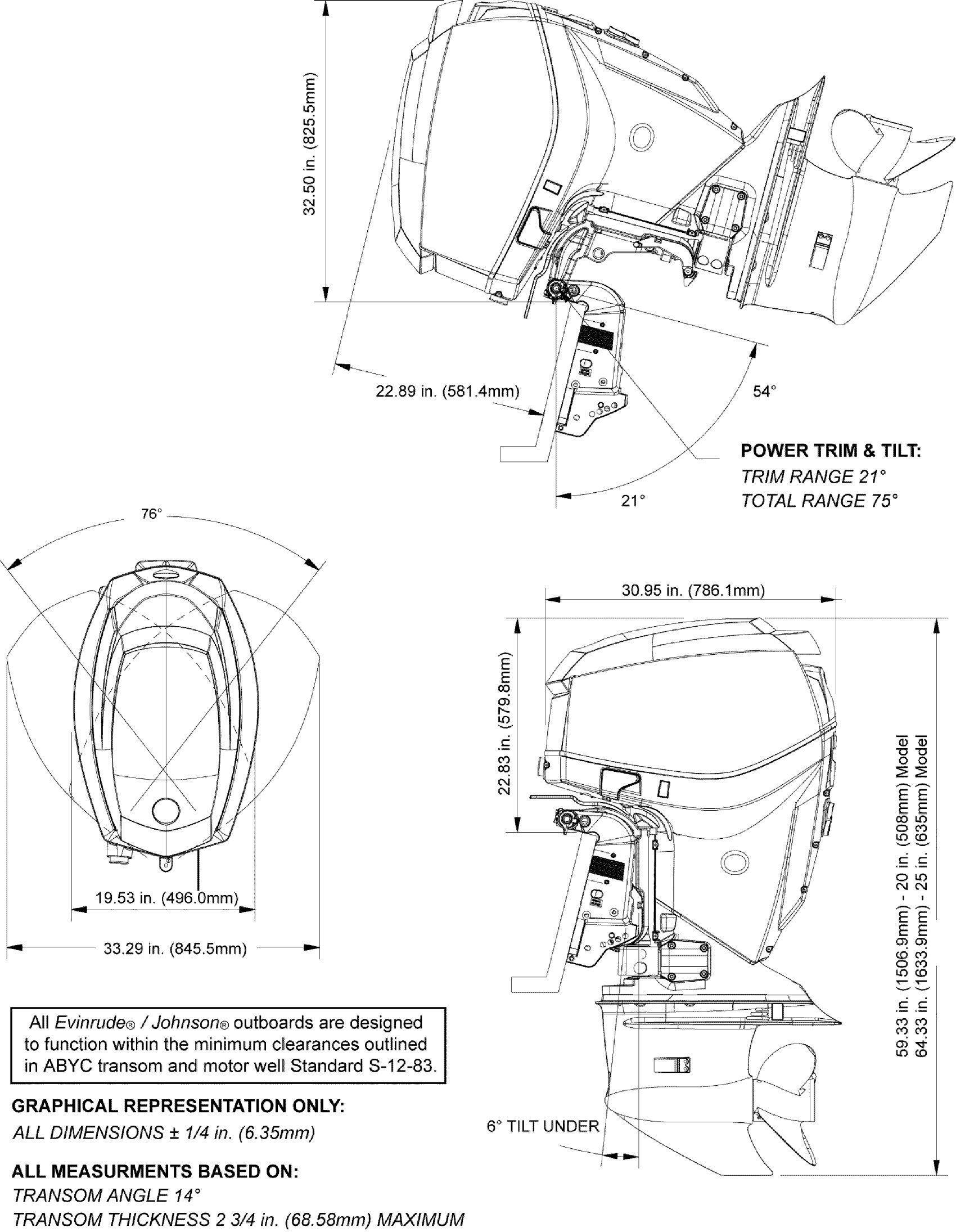 Evinrude E115DPLINE PROFILE DRAWING Diagram