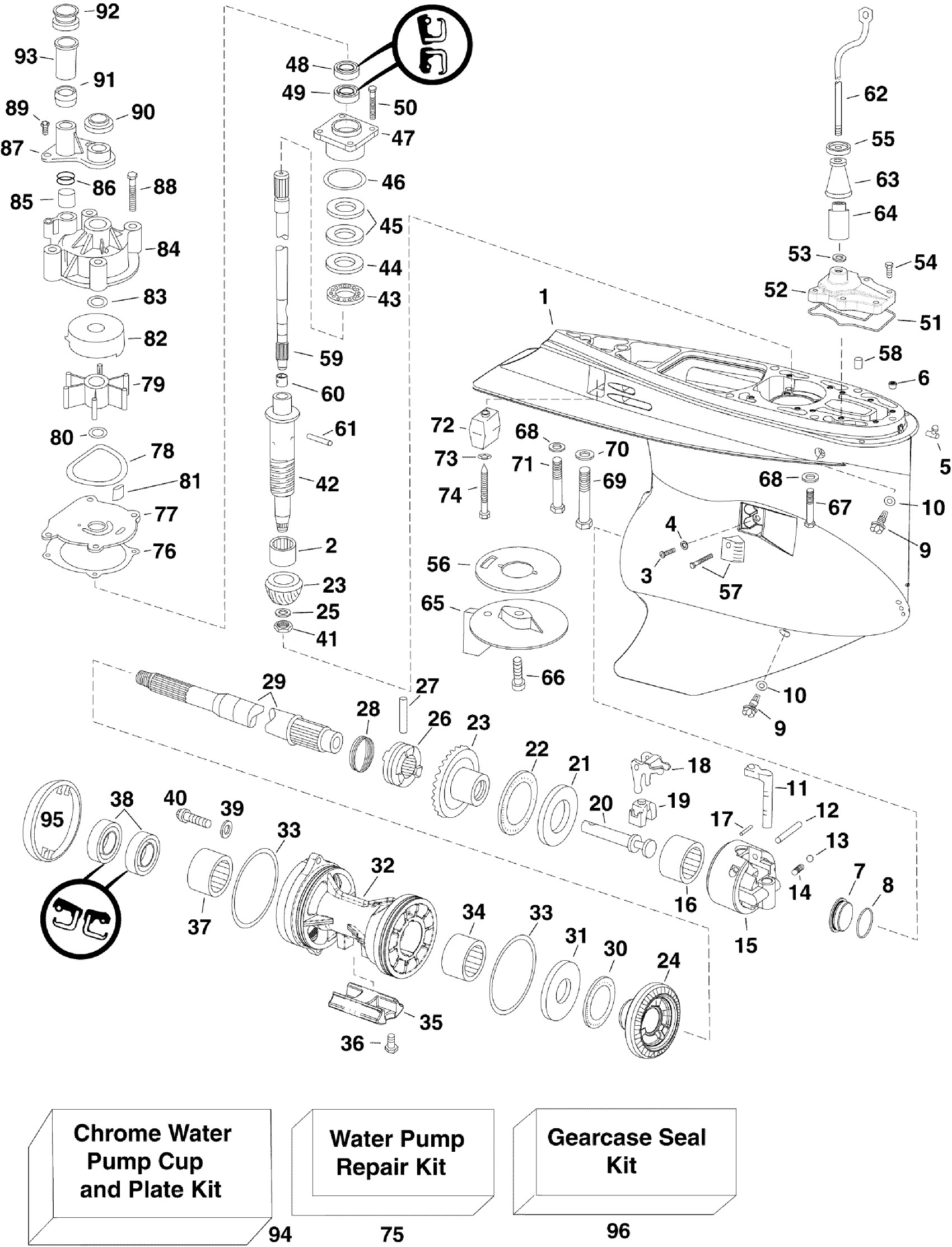 Evinrude E250DPZINS - (90° V6, 3.3L) GEARCASE, M2-Type Diagram
