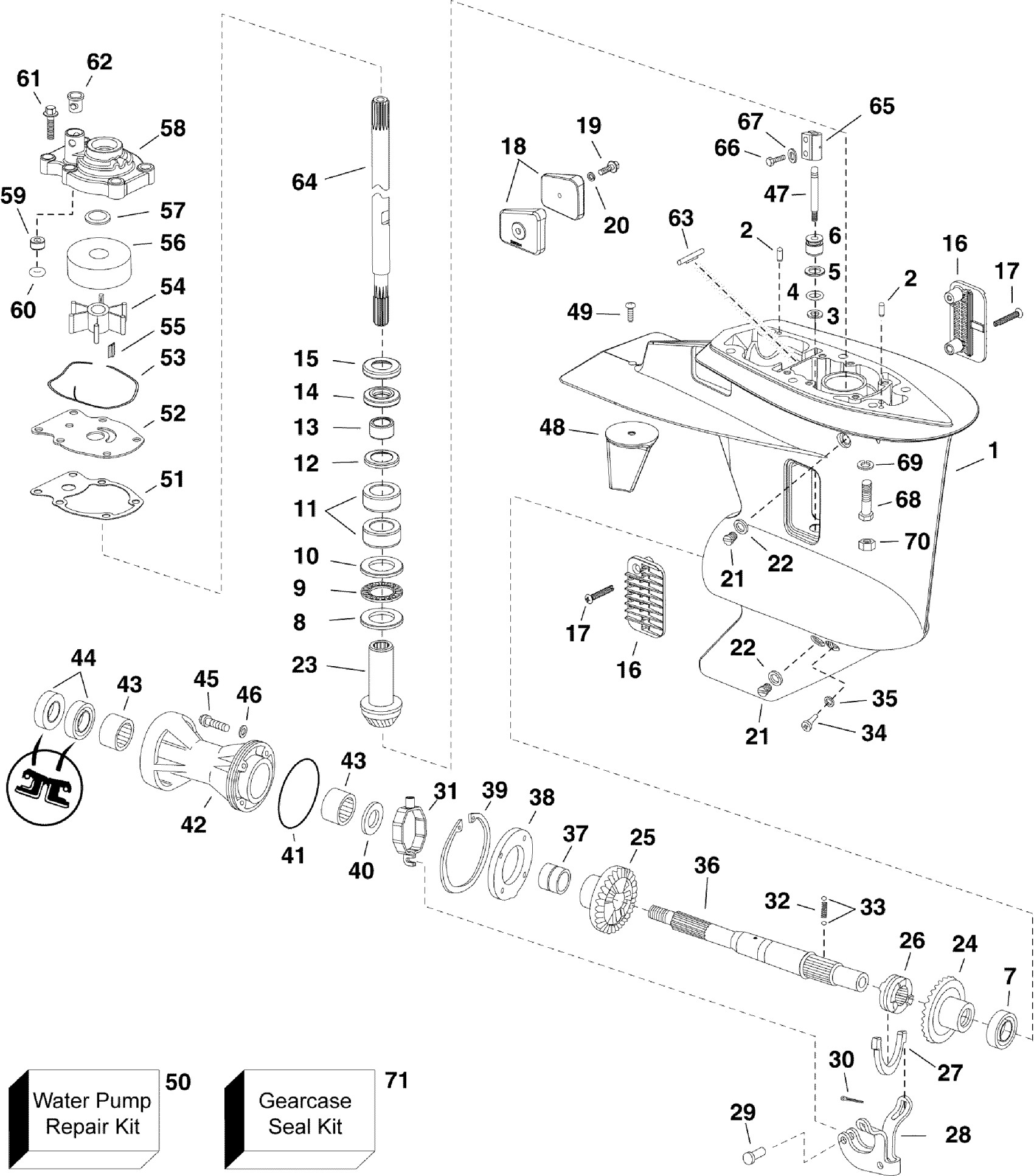 Evinrude E30DPSLINC GEARCASE, H-Type Diagram