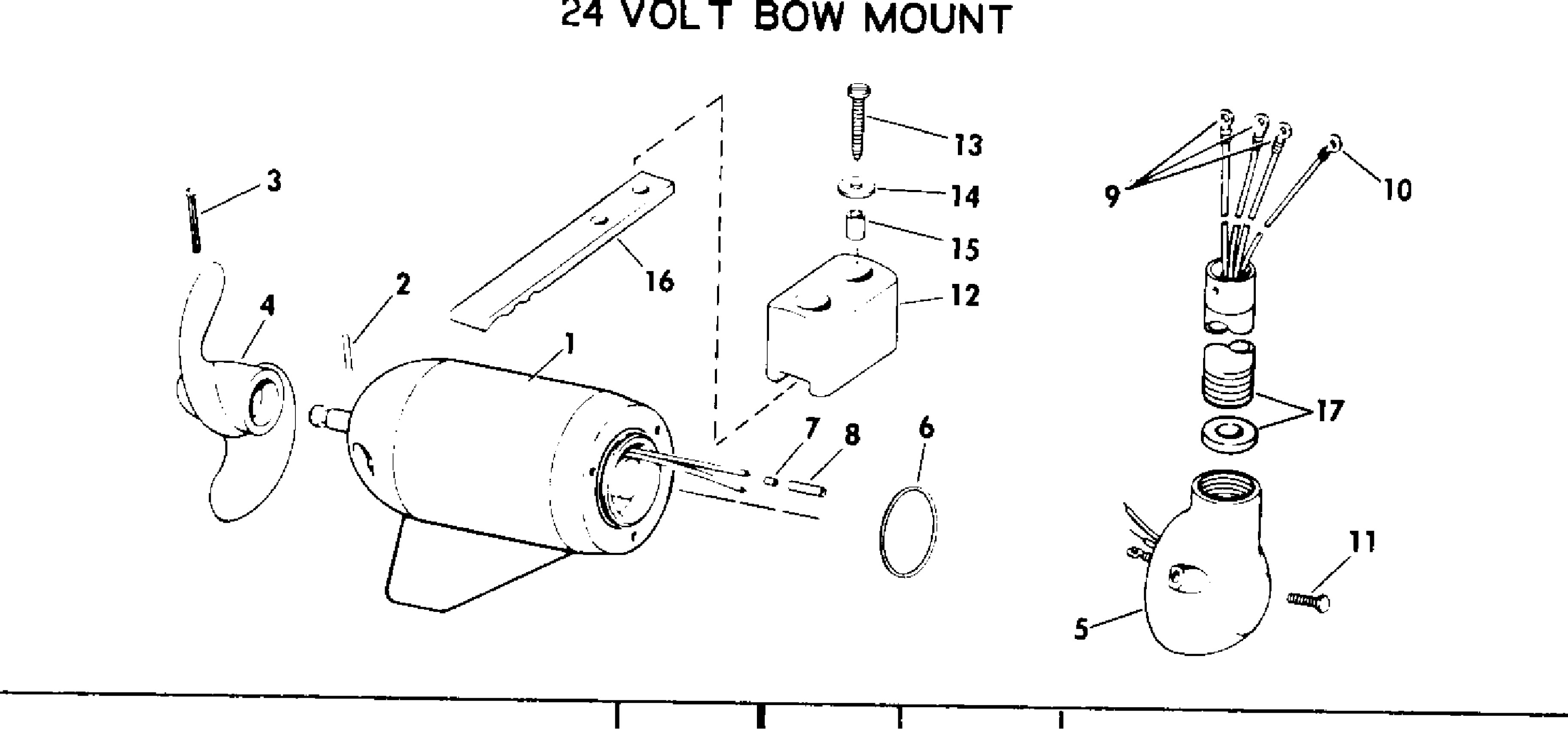 MOTOR AND ADAPTER GROUP 24 VOLT BOW MOUNT