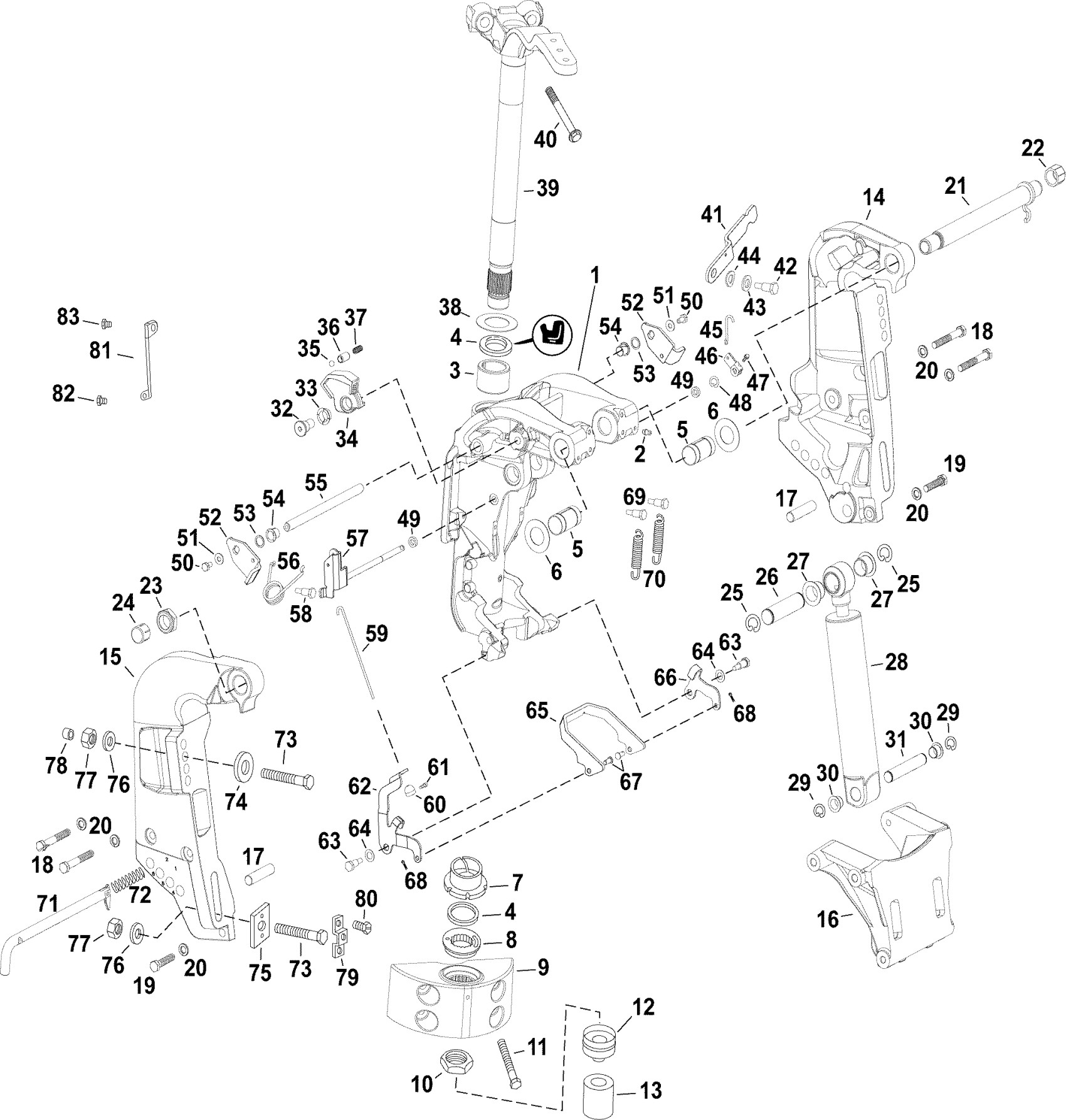 Evinrude E90WDELINM SWIVEL BRACKET - WDE Models Diagram