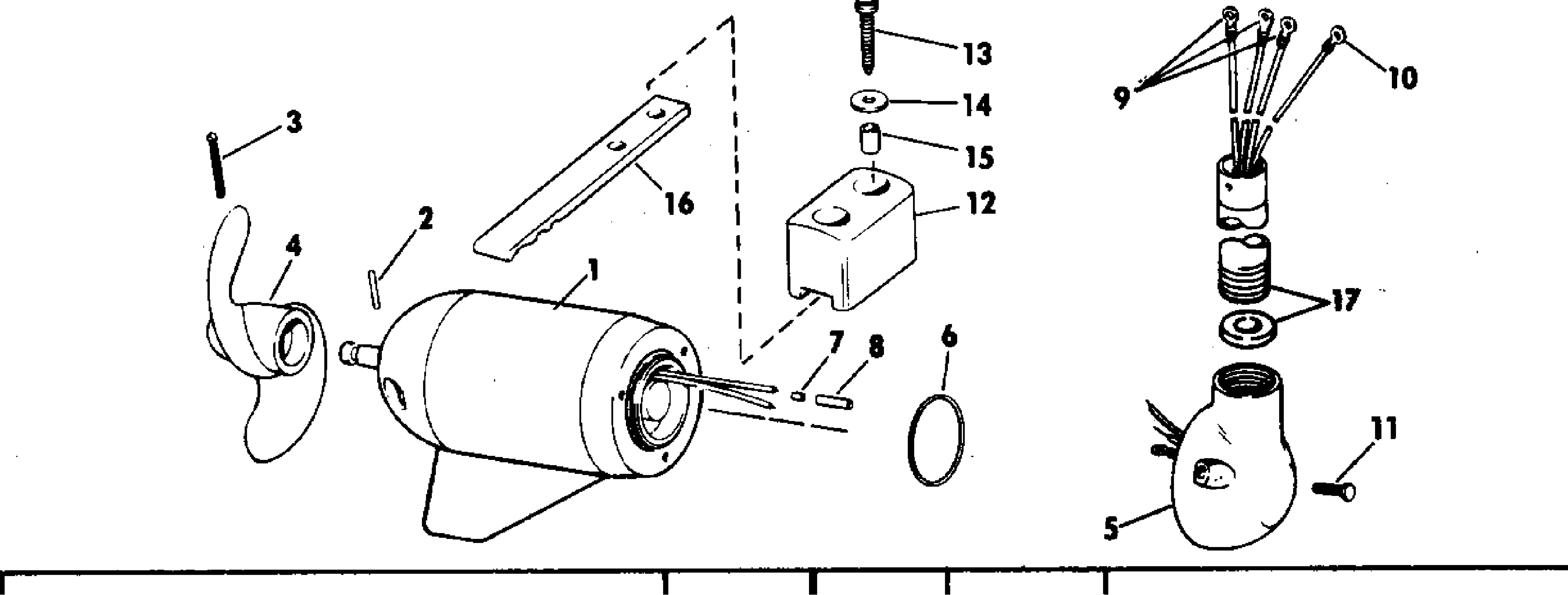 Evinrude EB14S 1975 MOTOR AND ADAPTER GROUP 24 VOLT BOW MOUNT Diagram