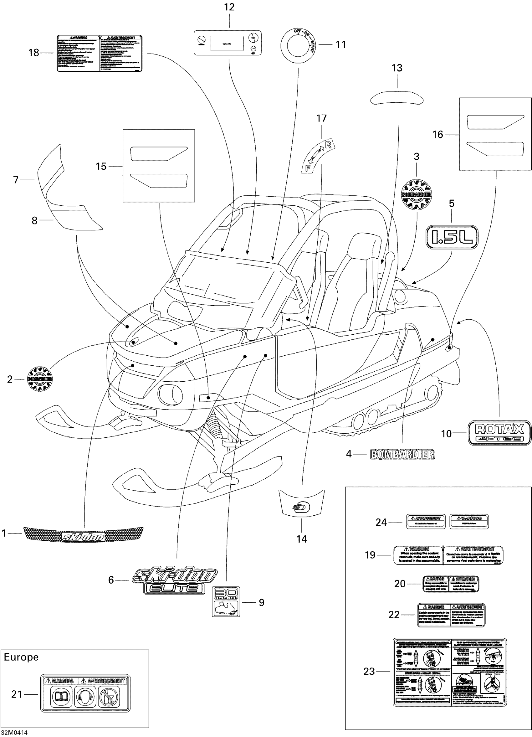 Ski-Doo Elite 1500 1st Edition, 2004 Decals Diagram