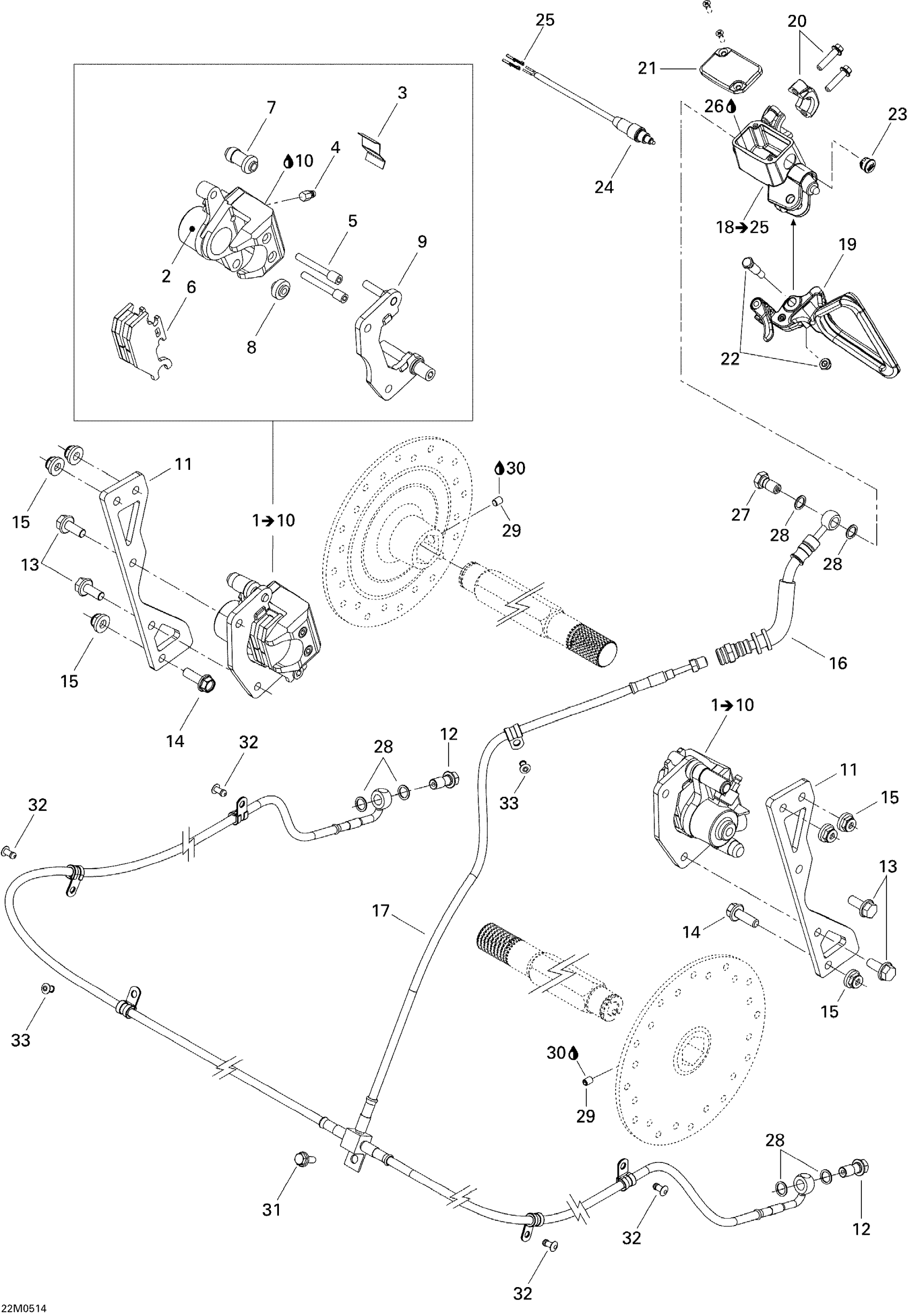 Ski-Doo Elite 1500 2nd Edition, 2004 Hydraulic Brake Diagram