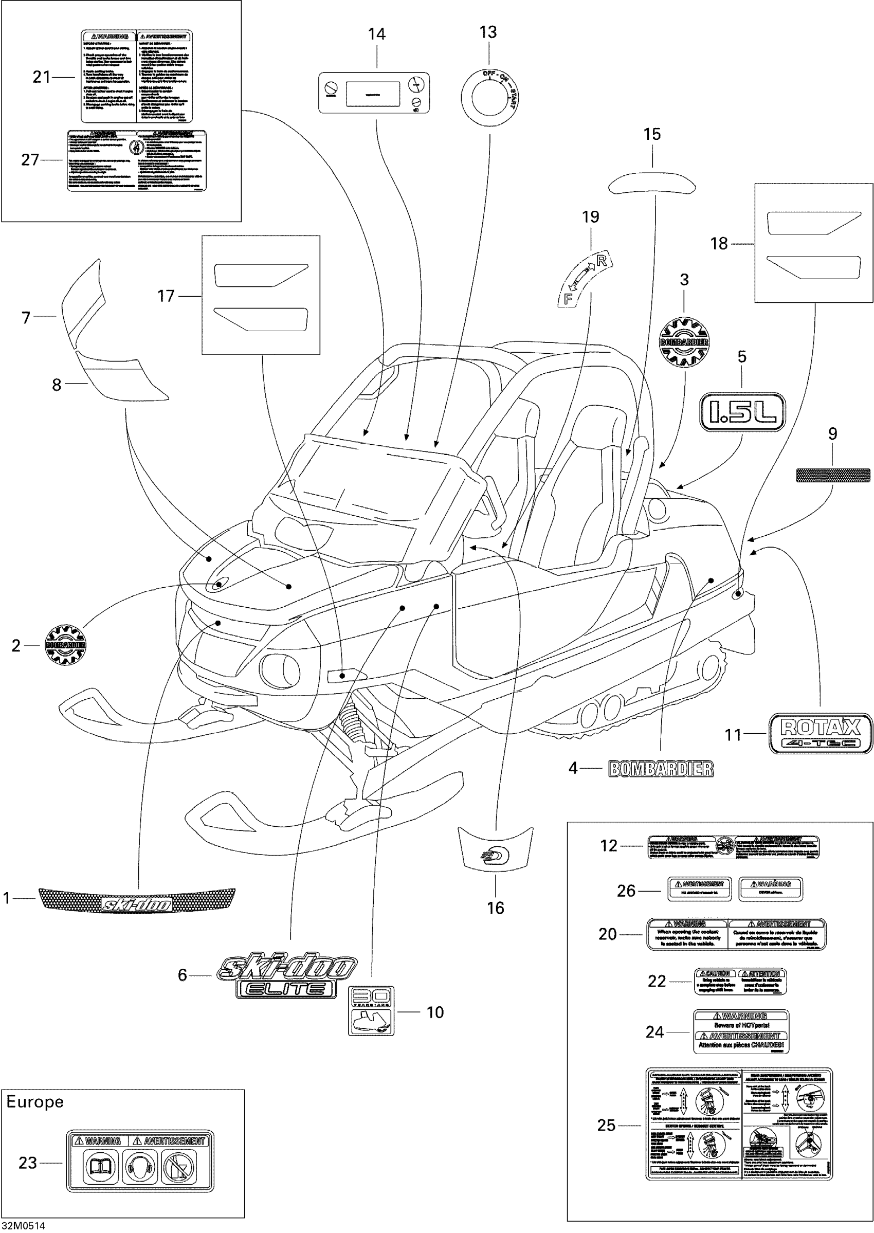 Ski-Doo Elite 1500 2nd Edition, 2004 Decals Diagram