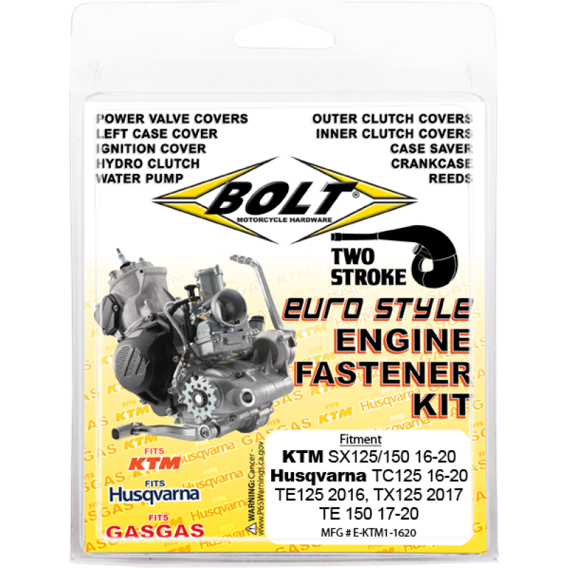 - Two-Stroke Engine Fastener kits have all the external fasteners from top to bottom-end including hardware for: Heads, Reeds, Cylinder, Crankcase, Case Saver, Water Pump, Left Case Cover, Ignition Cover, Inner & Outer Clutch Covers, Power Valve Covers