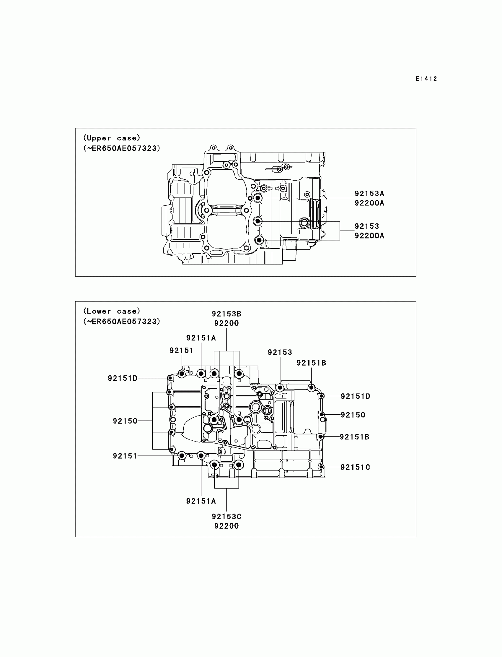 Kawasaki ER-6n (Australian) Crankcase Bolt Pattern Diagram