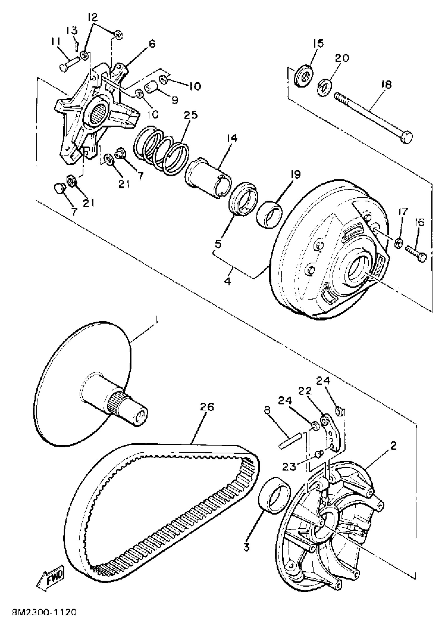 Yamaha ET340TH (ENTICER 340T (LONG TRACK)) 1984 PRIMARY SHEAVE Diagram
