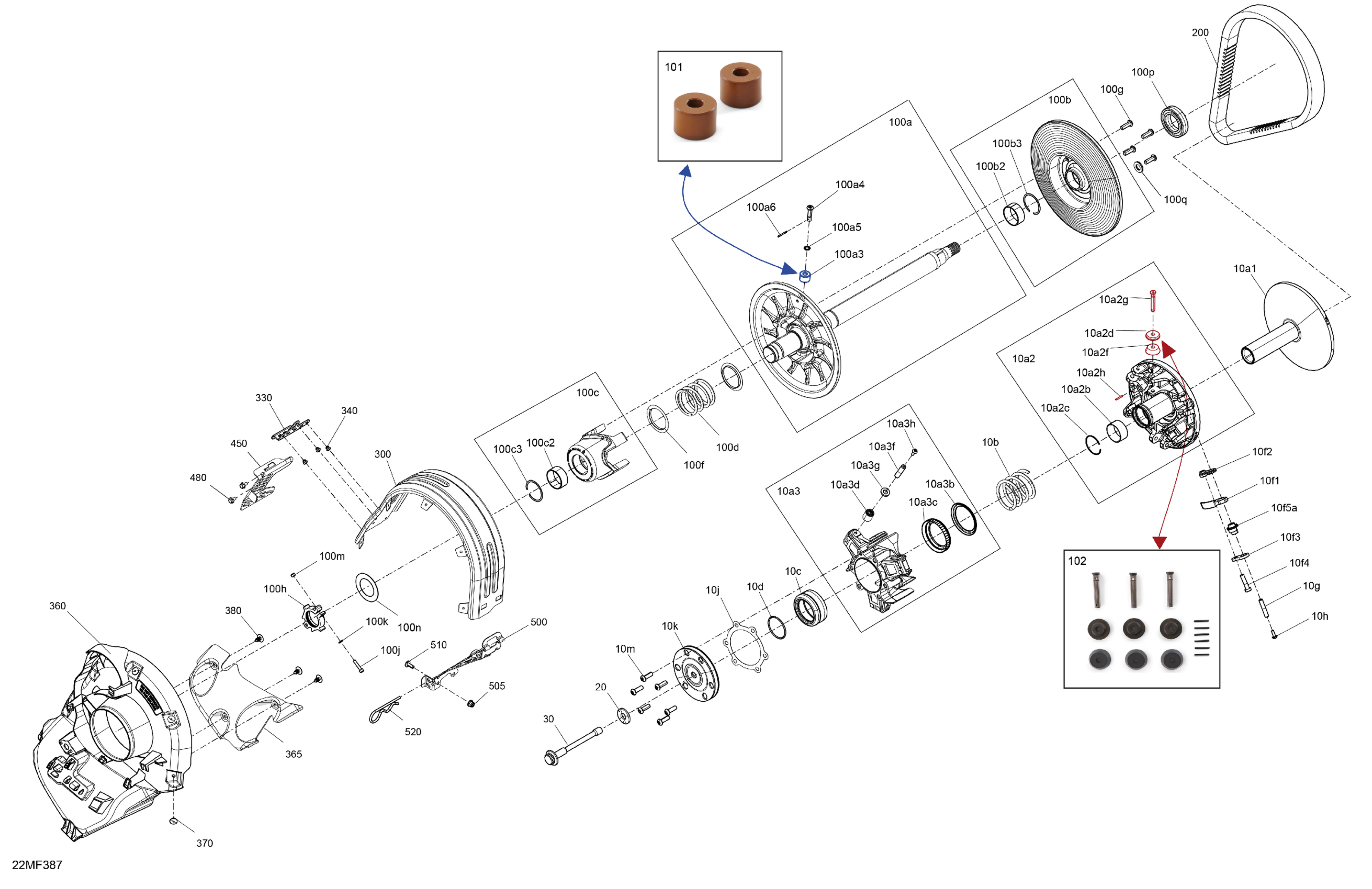 Ski-Doo Europe - BACKCOUNTRY - X-RS - 850 E-TEC - UYTM - Deep Black - 16X146X2.0P Track, 2026 04- Drive - Pulley Diagram