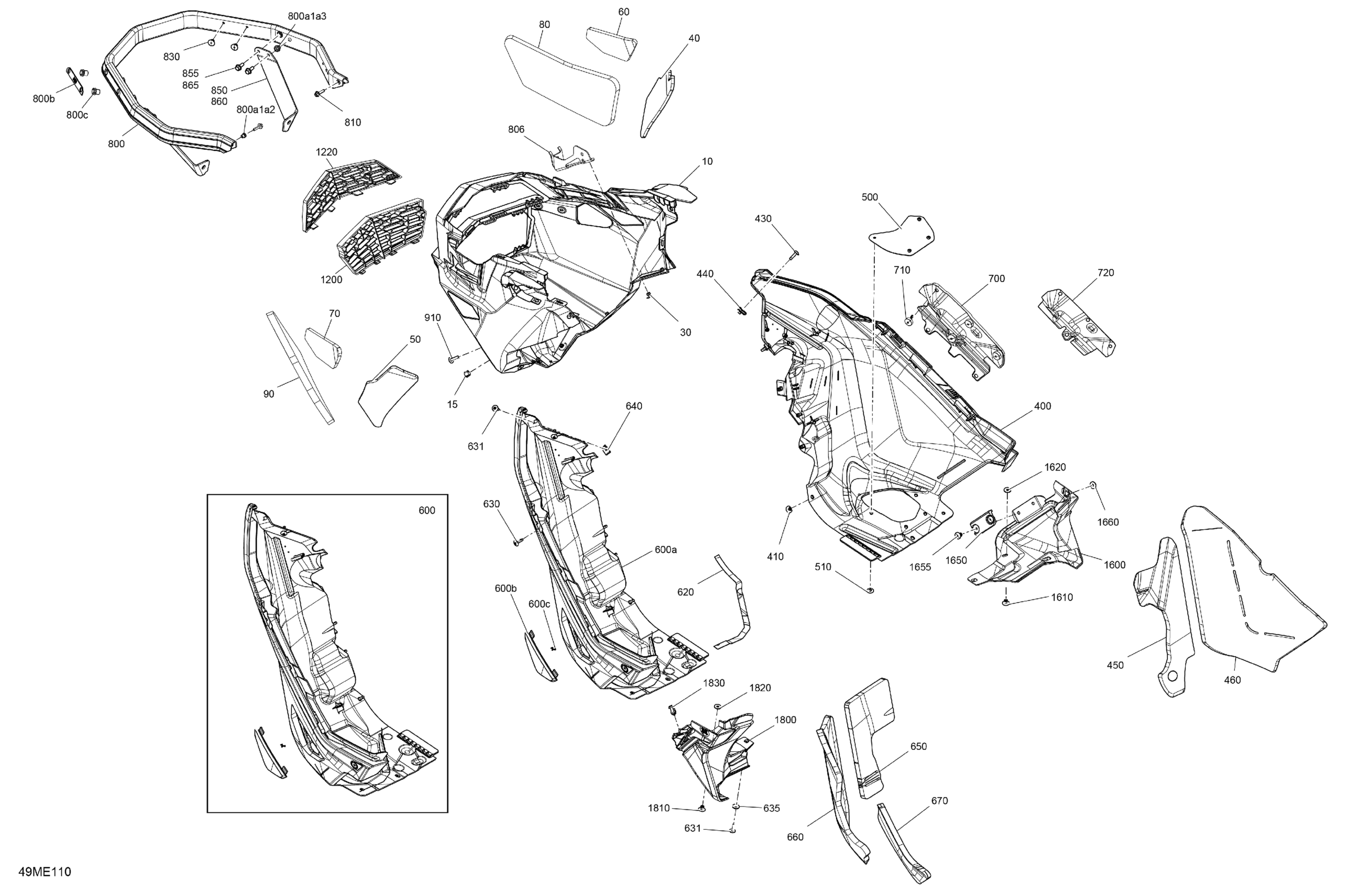 Ski-Doo Europe - EXPEDITION - 850 E-TEC - Xtreme - ADSA - Flare Yellow HG - 154X20X1.8CST8 Track - 2025 07- Body - Bottom Pan Diagram