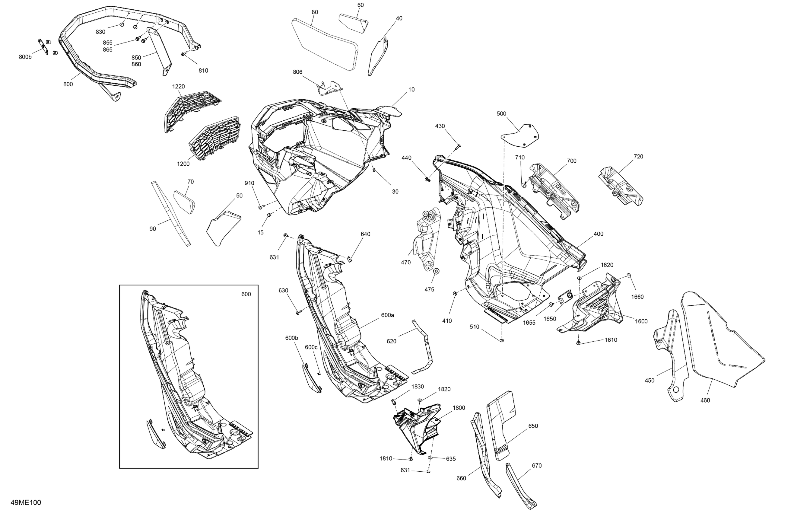 Ski-Doo Europe - EXPEDITION - 900 ACE - LE - AASA - Deep Black - 154X20X1.5CST Track - 2025 07- Body - Bottom Pan Diagram