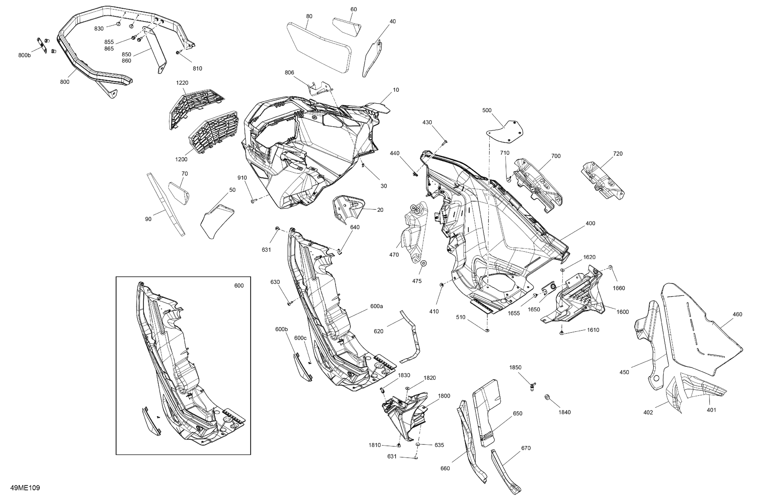 Ski-Doo Europe - EXPEDITION - 900 ACE TURBO - LE - ACSG - Catalyst Gray - 154X20X1.5CST Track - 2025 07- Body - Bottom Pan Diagram