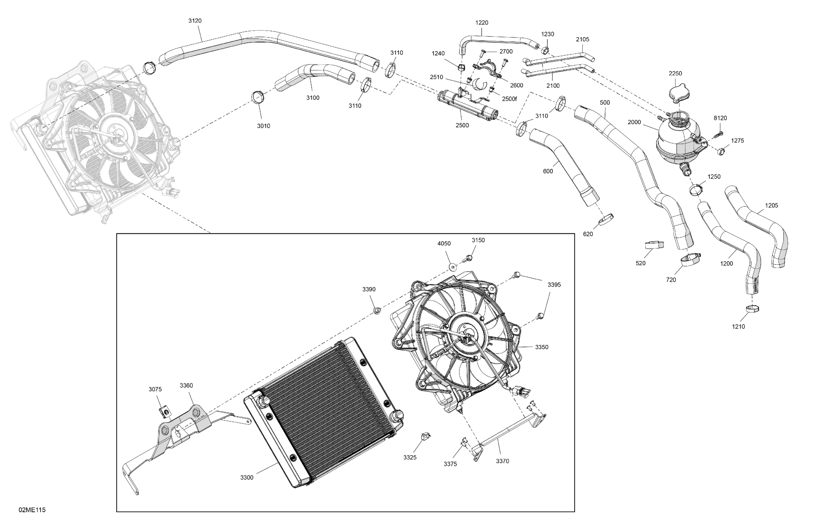 Ski-Doo Europe - GRAND TOURING - 600 ACE - SPORT - ETSB - Neo Yellow - 137X15X1.25ST3 Track - 2025 02- Engine - Cooling Diagram