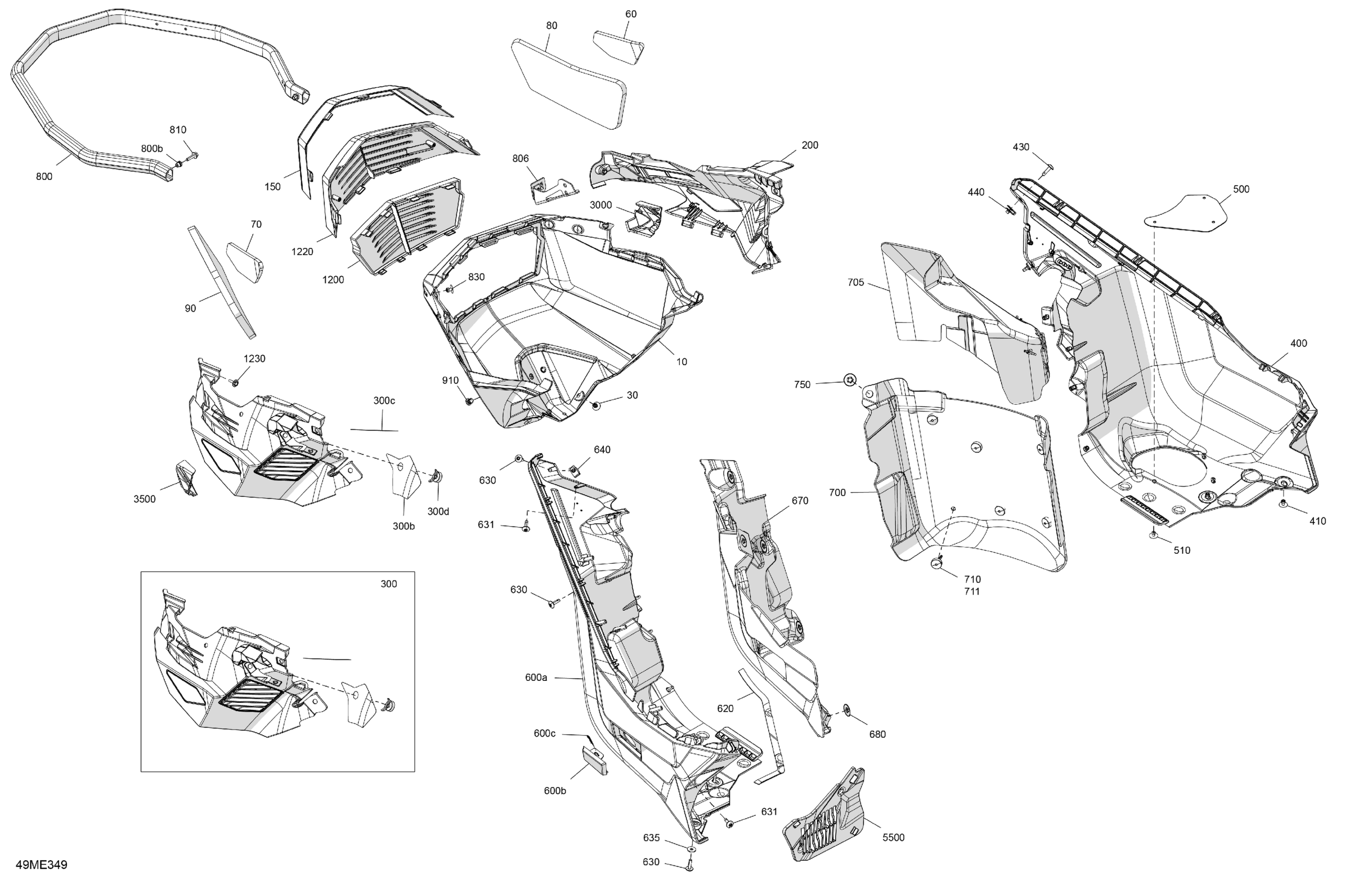 Ski-Doo Europe - MXZ - 850 E-TEC - X-RS - MVSH - Neo Yellow - 137X15X1.5IR Track - 2025 07- Body - Bottom Pan Diagram