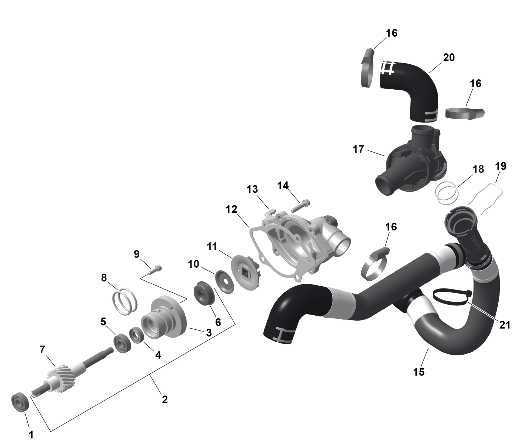 Ski-Doo Europe - MXZ - RACING - 600 RS - BMSB - Neo Yellow - 2025 ROTAX - Engine Cooling Diagram