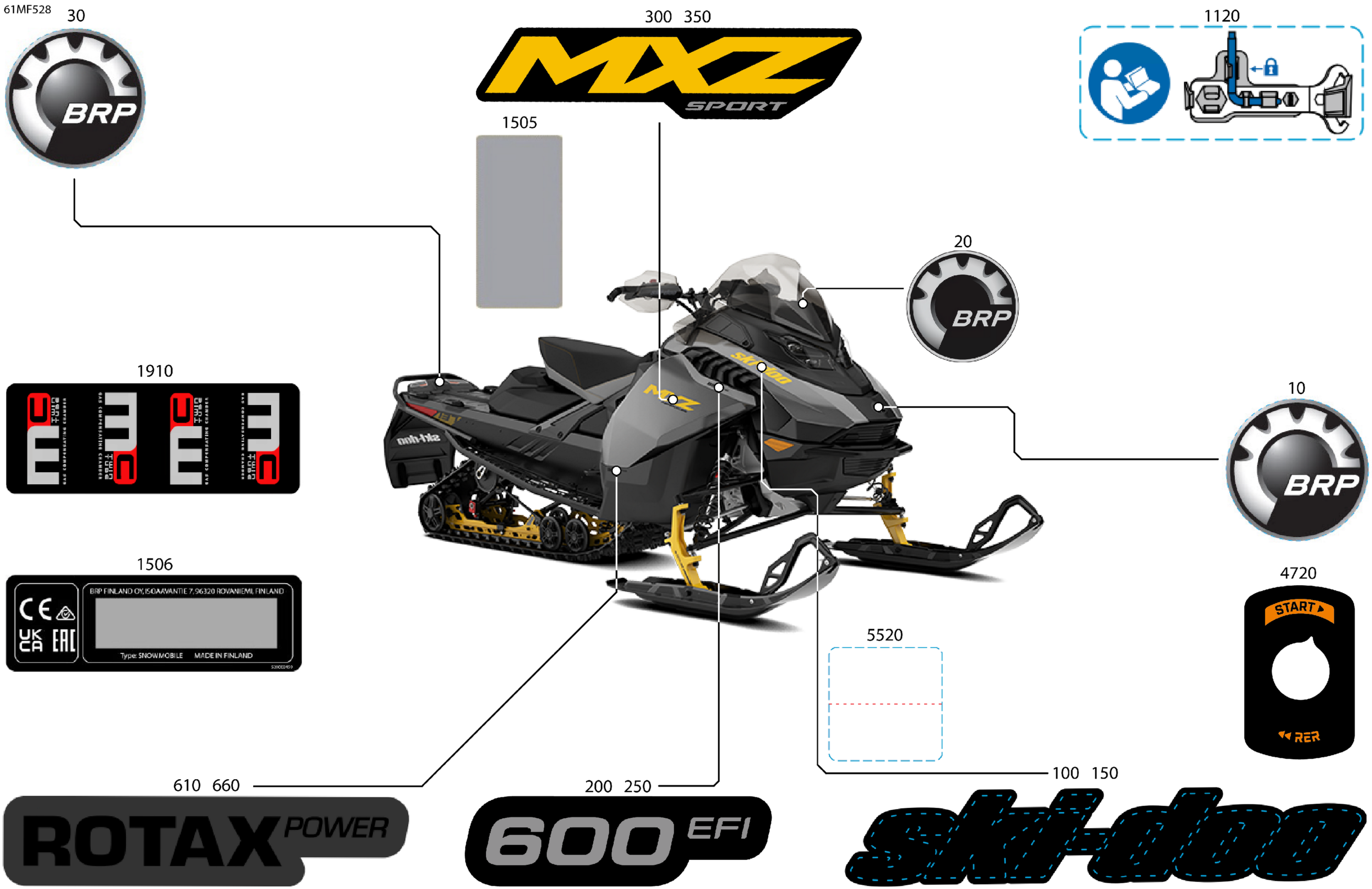 Ski-Doo Europe - MXZ - SPORT - 600 EFI - UCTA - Neo Yellow - 15X129X1.25RS Track, 2026 07- Body - Decals Diagram