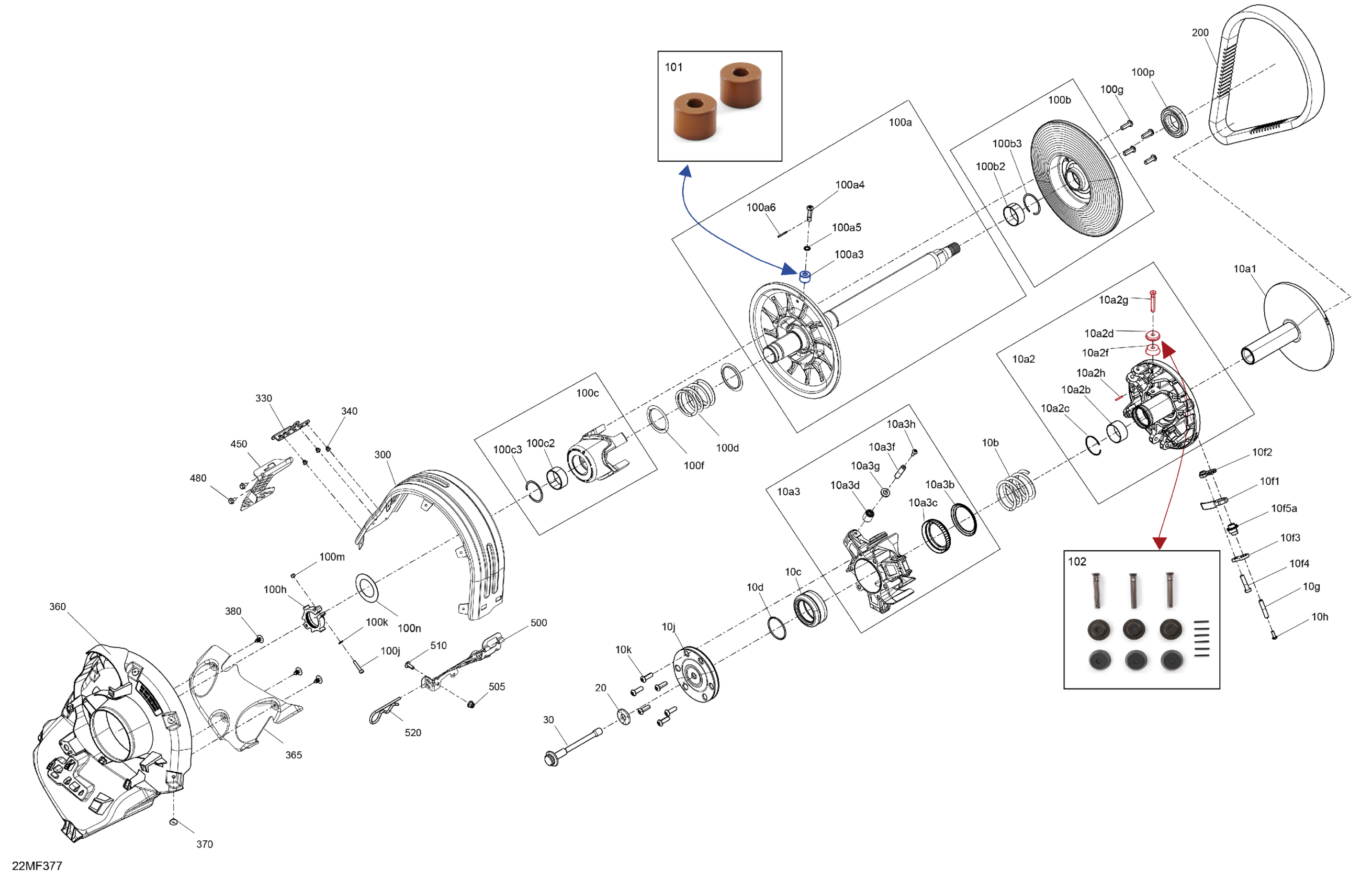 Ski-Doo Europe - MXZ - X-RS - 850 E-TEC - MVTL - Mineral Blue - 15X137X1.5IR Track, 2026 04- Drive - Pulley Diagram