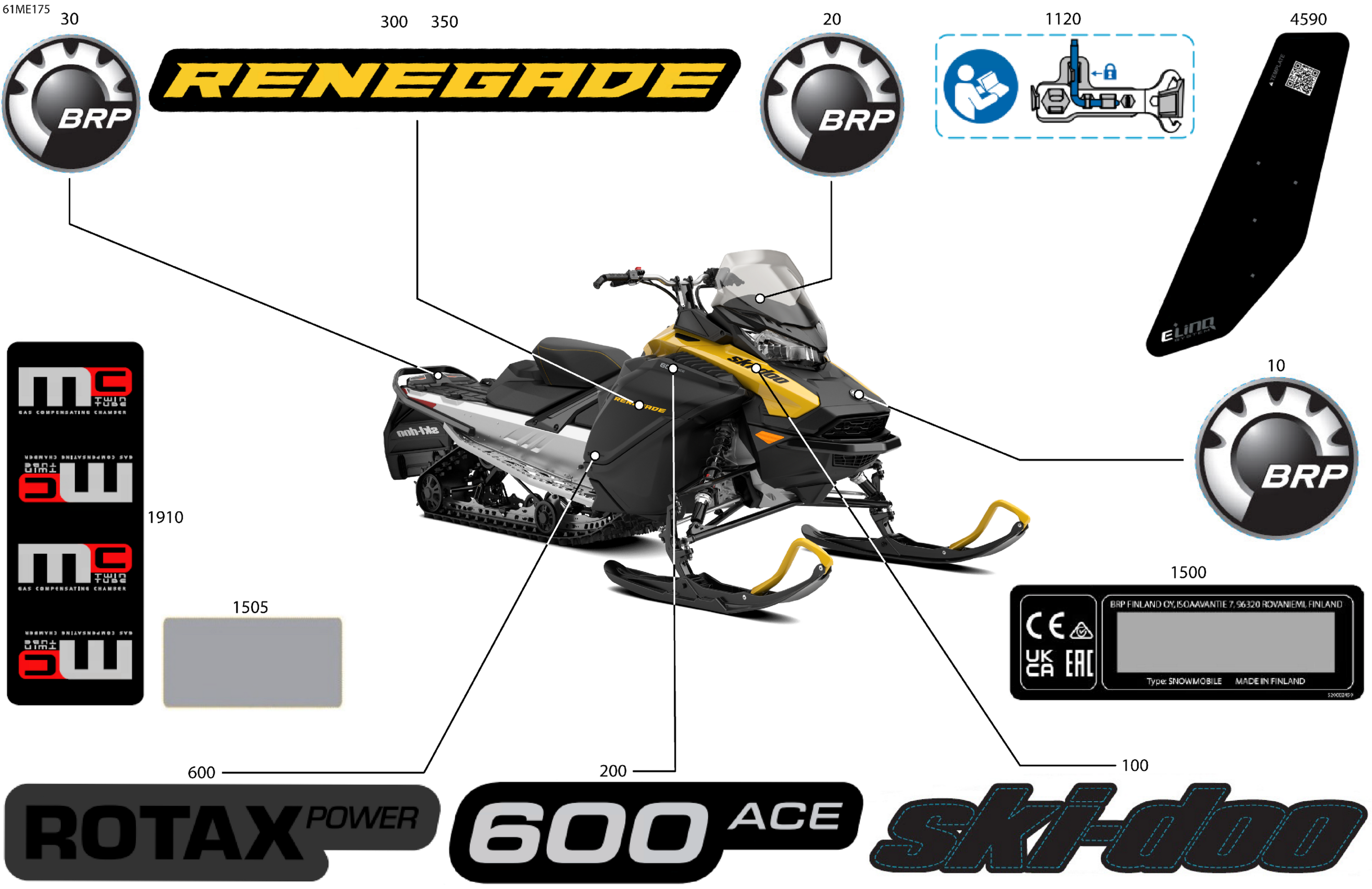 Ski-Doo Europe - RENEGADE - 600 ACE - SPORT - MCSB - Neo Yellow - 137X15X1.25RS Track - 2025 07- Body - Decals Diagram