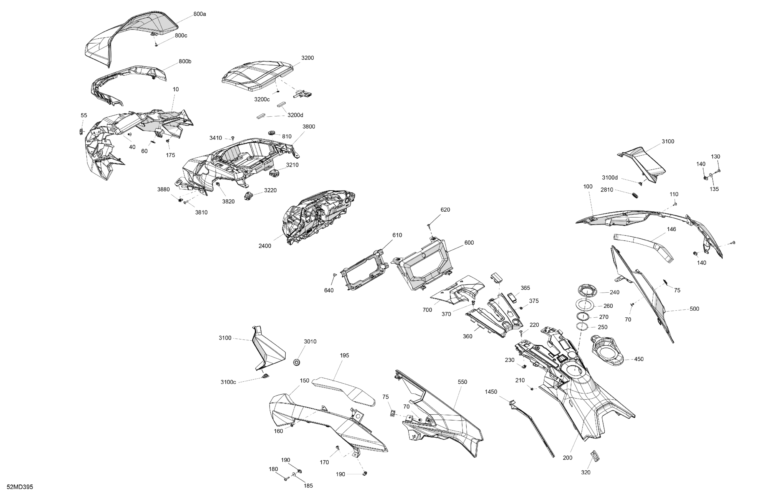 Ski-Doo Europe - RENEGADE 900 ACE Turbo R - X-RS - DBRN - Deep Black - 137X15X1.5IR Track, 2024 07- Body - Hood Diagram