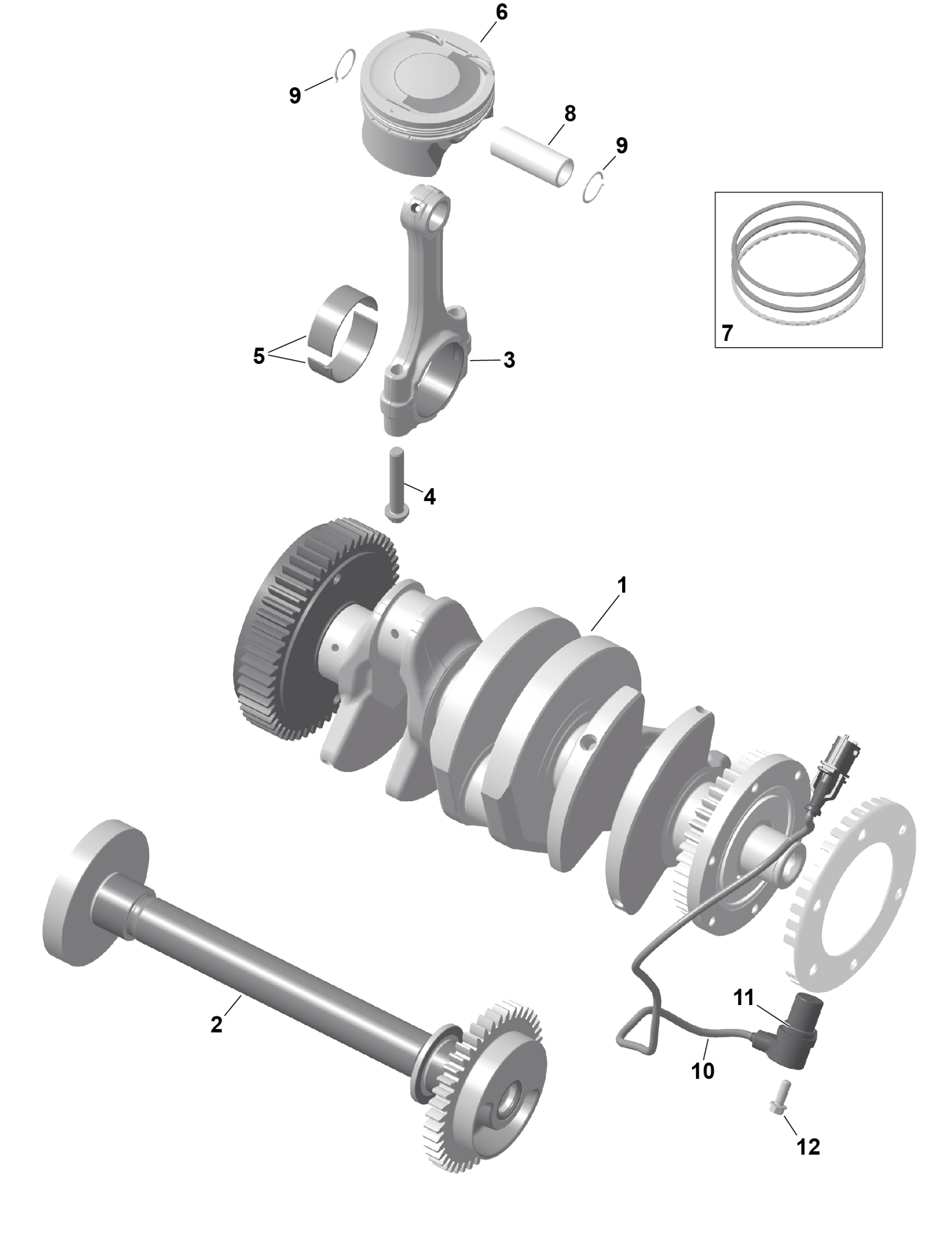 Can-Am On-Road Europe - RT LIMITED - Dark Edition - G1SB - Hyper Silver, 2025 01- ROTAX - Crankshaft and Pistons Diagram