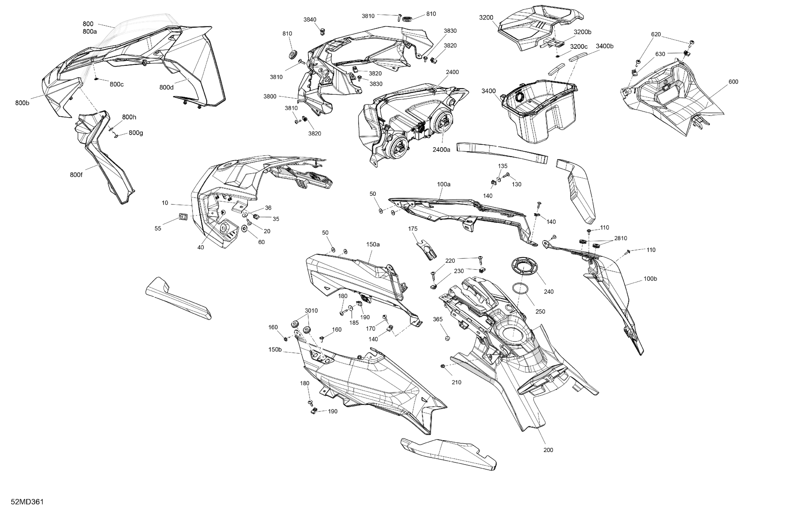 Ski-Doo Europe - SKANDIC 600 EFI - SPORT - AJRB - Neo Yellow - 154X20X1.25WT Track, 2024 07- Body - Hood Diagram