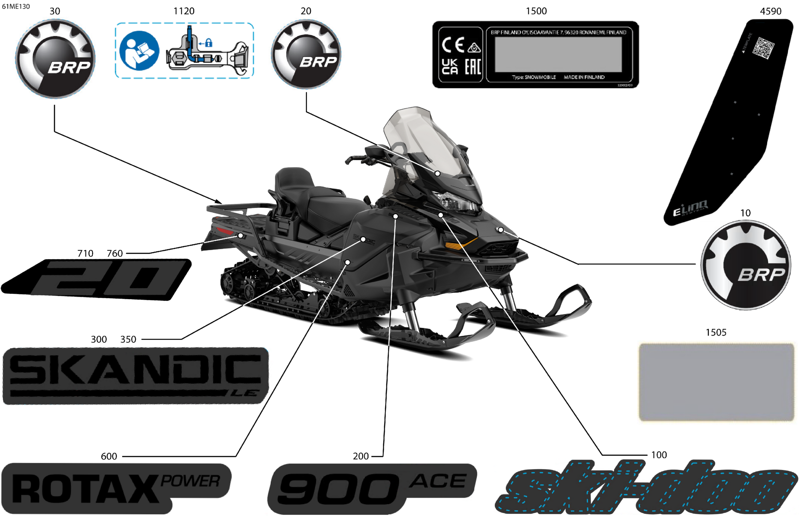 Ski-Doo Europe - SKANDIC - 900 ACE - LE - AHSE - Deep Black - 154X20X1.5CST Track - 2025 07- Body - Decals Diagram
