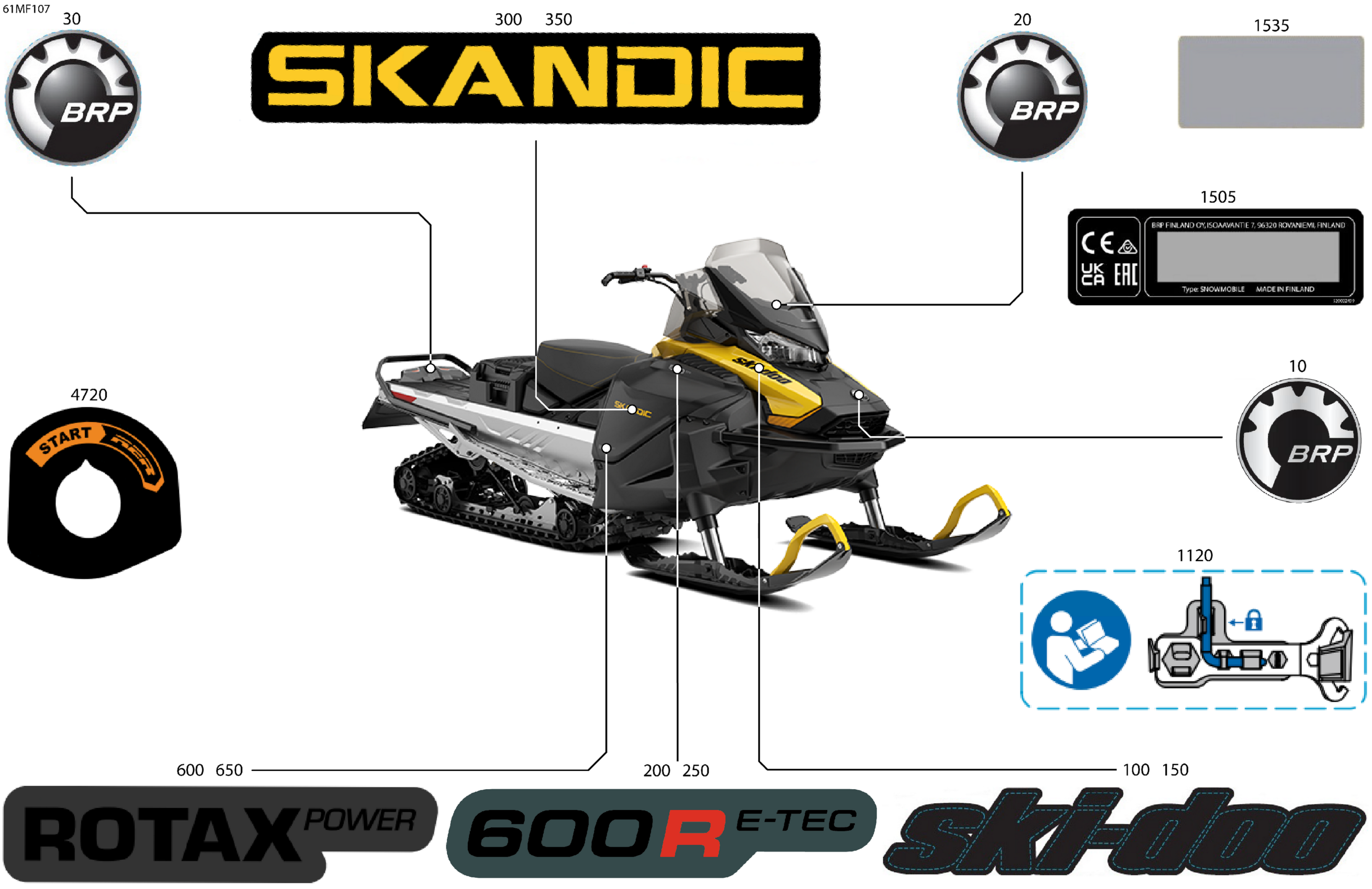 Ski-Doo Europe - SKANDIC - SPORT - 600 EFI - AJTB - Neo Yellow - 20X154X1.25WT Track, 2026 07- Body - Decals Diagram