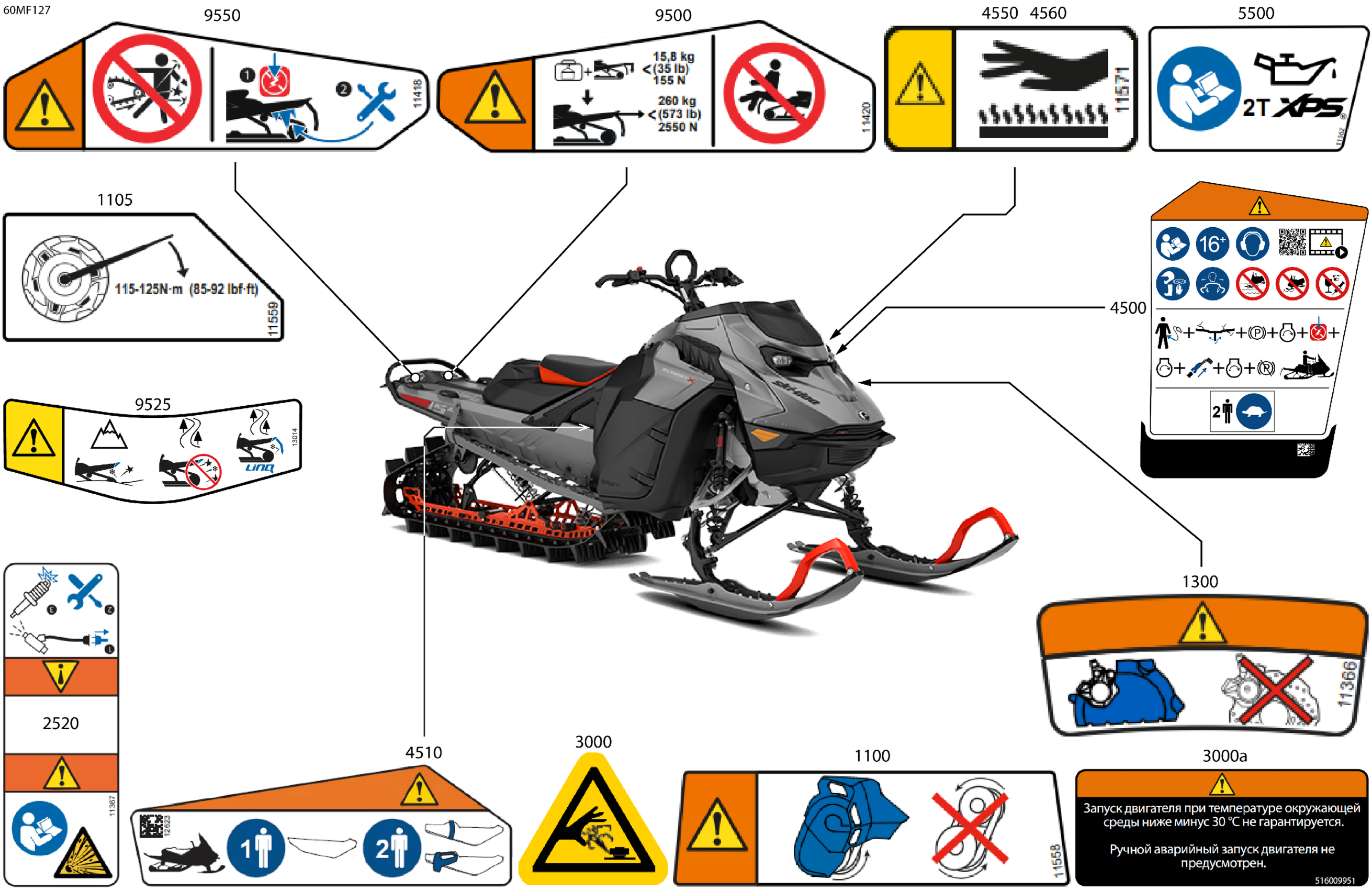 Ski-Doo Europe - SUMMIT - X - 850 E-TEC - TNTT - Monument Gray - 16X154X3P5F Track, 2026 07- Body - Warning Decals Diagram