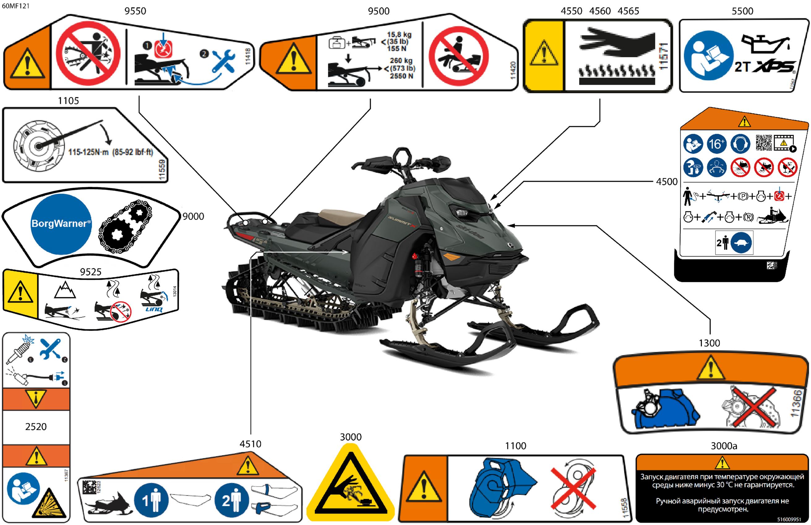 Ski-Doo Europe - SUMMIT - X with Expert Package - 850 E-TEC Turbo R - TJTH - Tundra Green - 16X165X3P4 Track, 2026 07- Body - Warning Decals Diagram
